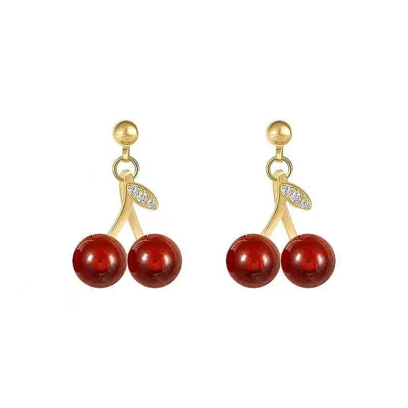 Compact & Stylish S925 Silver Needle Drop Earrings Cute Cherry Fashion Jewelry for Korean Gifts