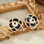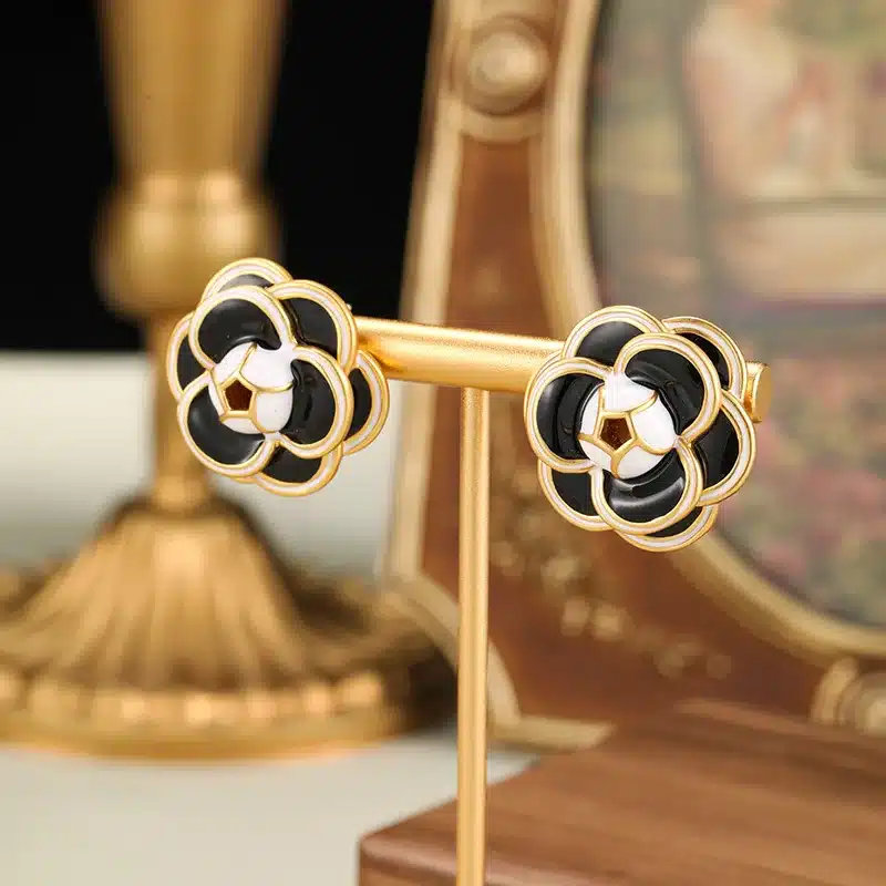 Luxury Flower Shape Black Enamel Earrings S925 Silver Drop Color Jewel Earrings