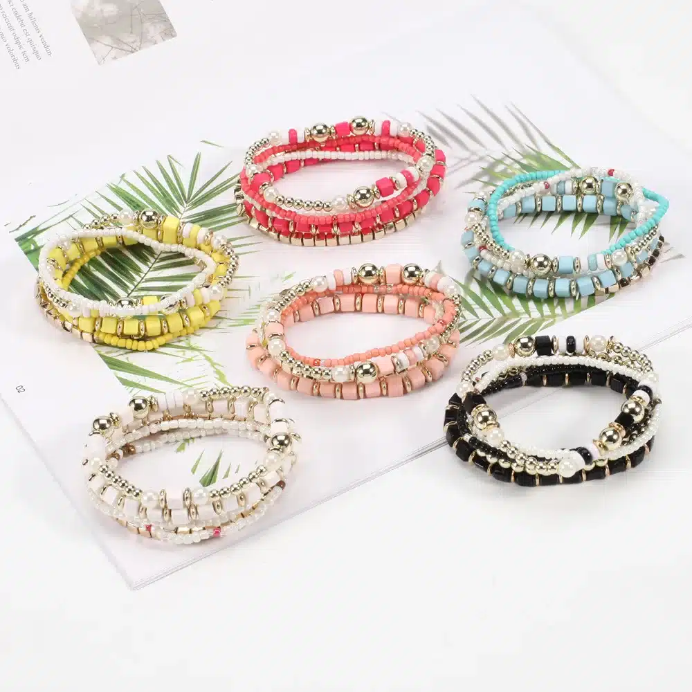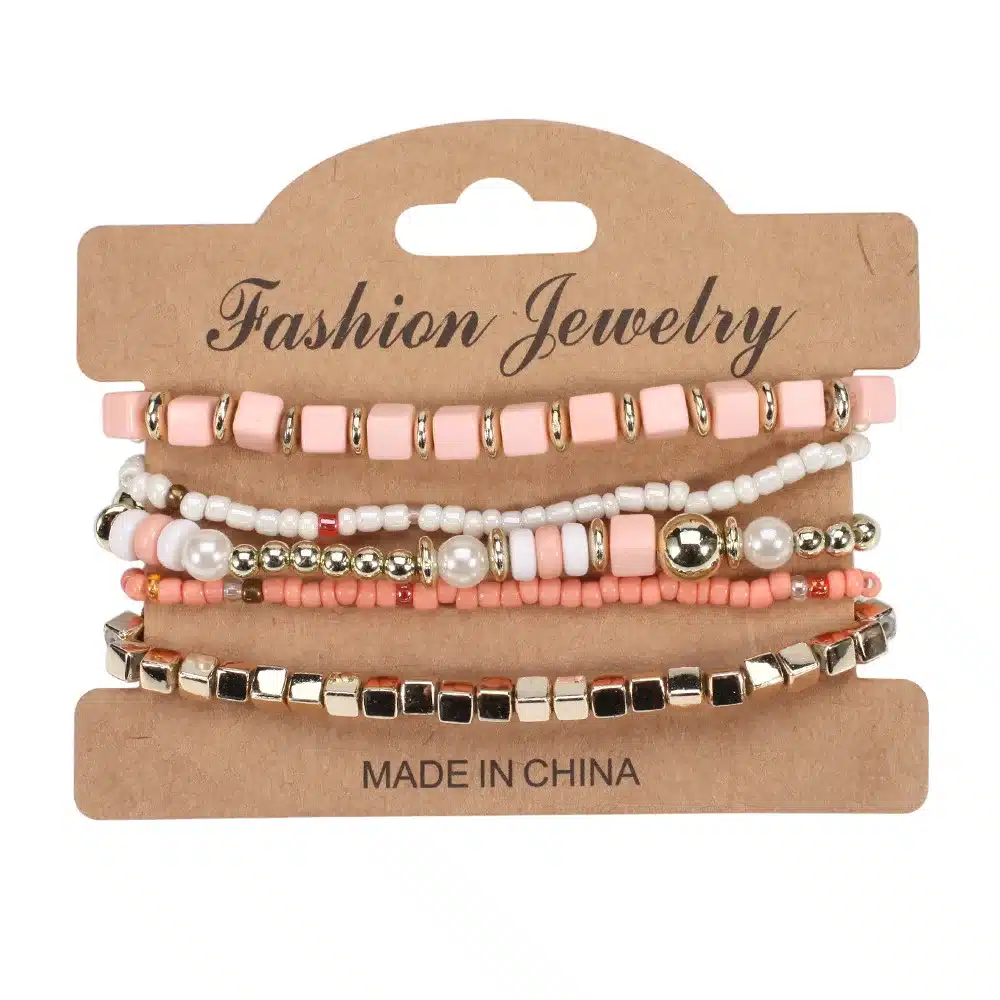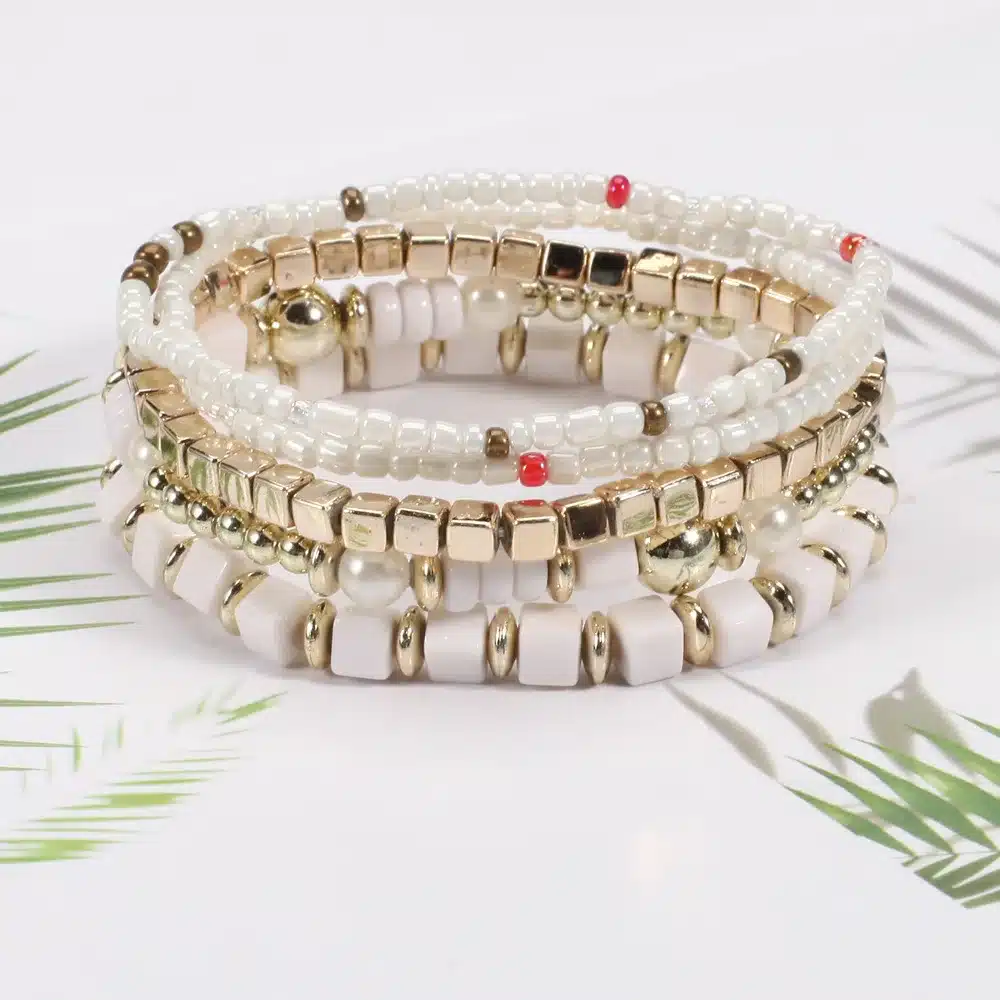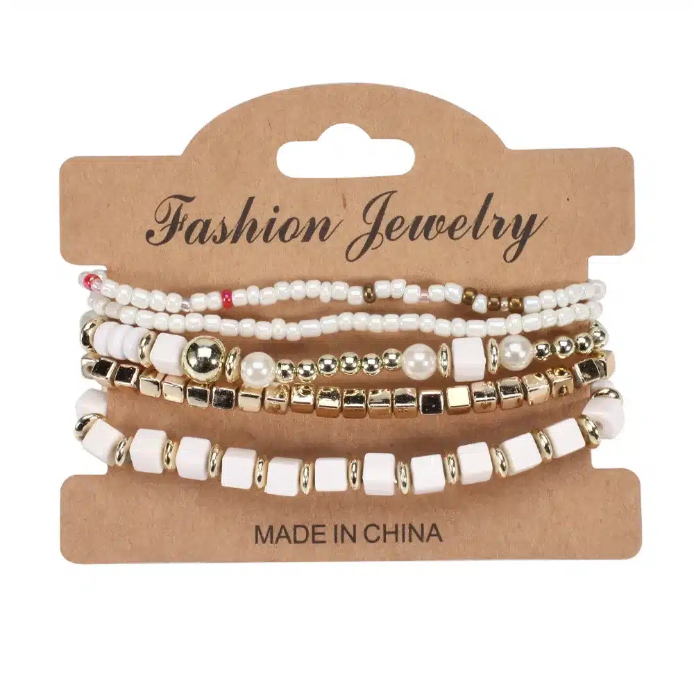 Be the first to review “Creative Bohemian Handmade Seed Bracelet with Card Solid Acrylic Gold Square Beads Set of 5 Elastic Rope Bracelets” Cancel reply