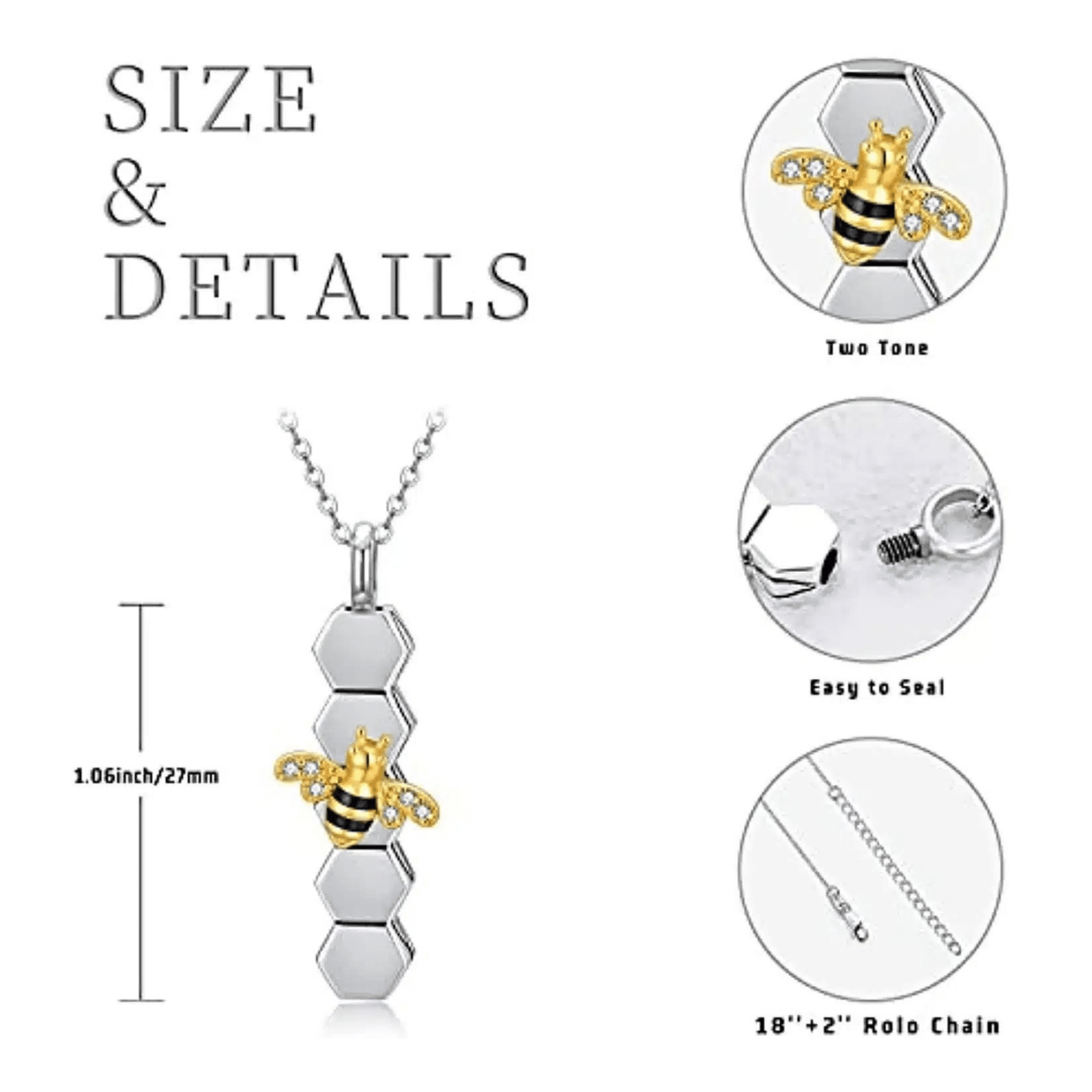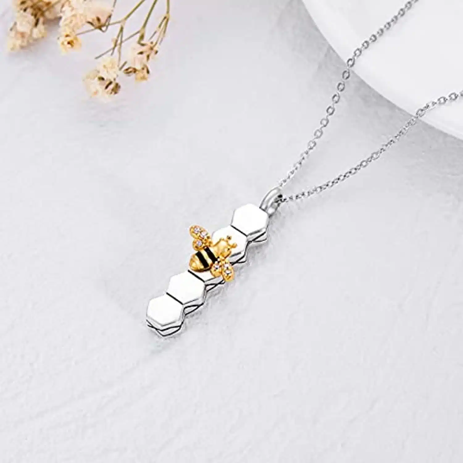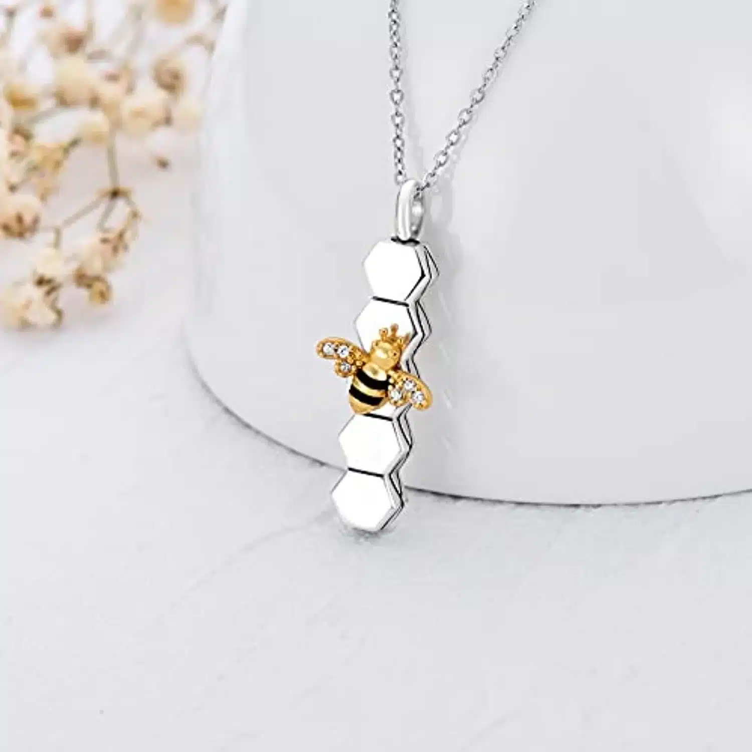 Cremation Keepsake Jewelry 925 Sterling Silver Custom Bee Honeycomb Urn Necklace for Ashes