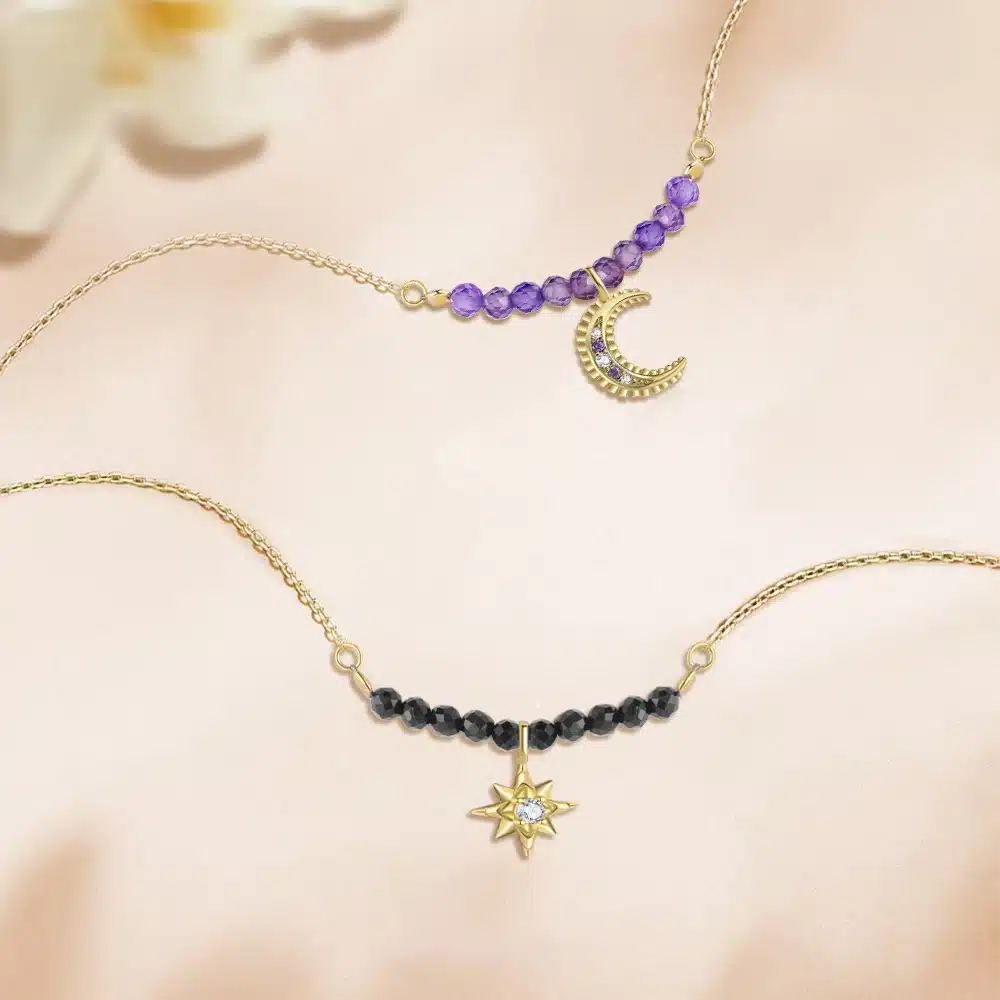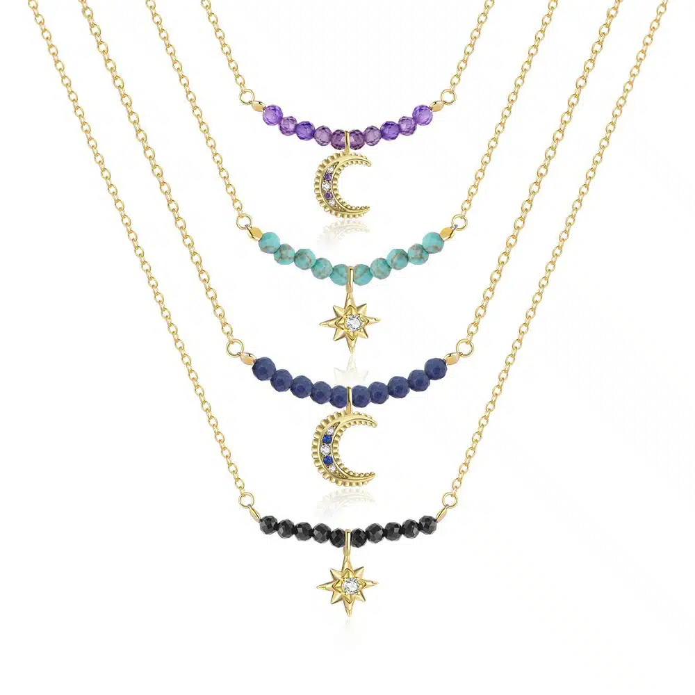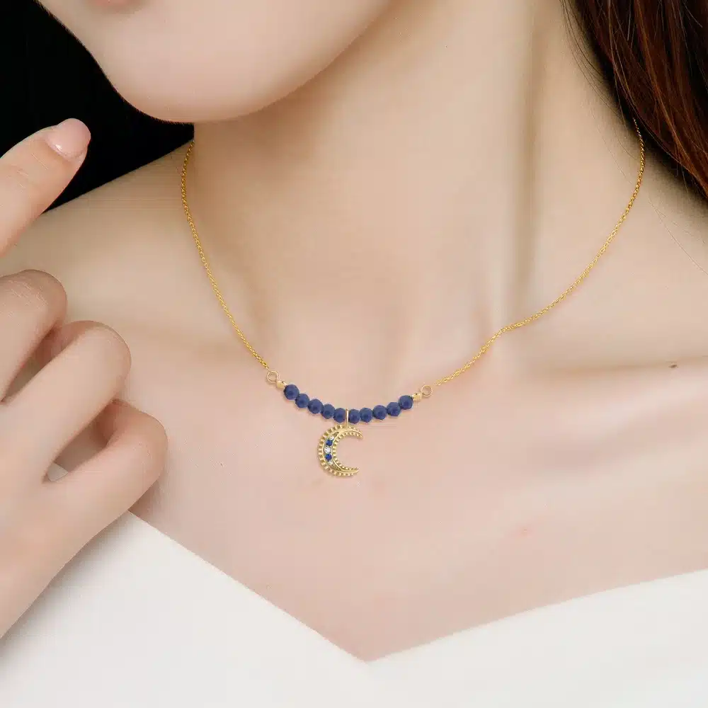 Be the first to review “Custom 18K Gold Plated Vintage S925 Sterling Silver Star and Moon Necklace Women Natural Crystal Lapis Lazuli Necklace Pendant” Cancel reply