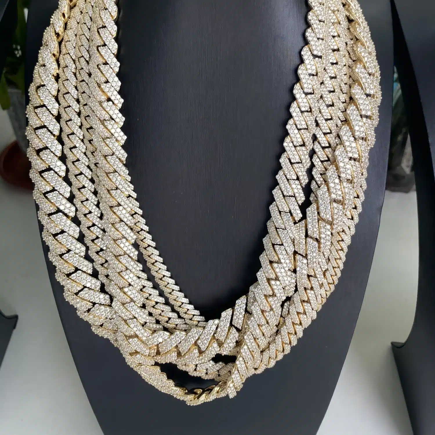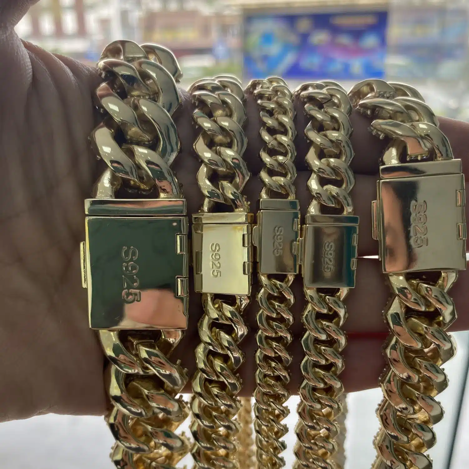 Hip Hop 8mm Iced Out Miami Cuban Link Chain Necklace for Men Gold-Plated 925 Silver VVS Moissanite Diamond Fine Jewelry