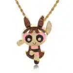 Hip Hop Hot Sale Elf Punk Buttercup Pendant Iced Out Cartoon Charm Powerpuff Girls Pendant Jewelry Necklace