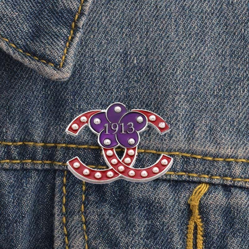 Topvesko Fashion Custom Sigma Gamma Rho Greek Sorority Colorful Pearl Brooch White Pearls Delta Sigma Zeta Alpha Brooch Pins