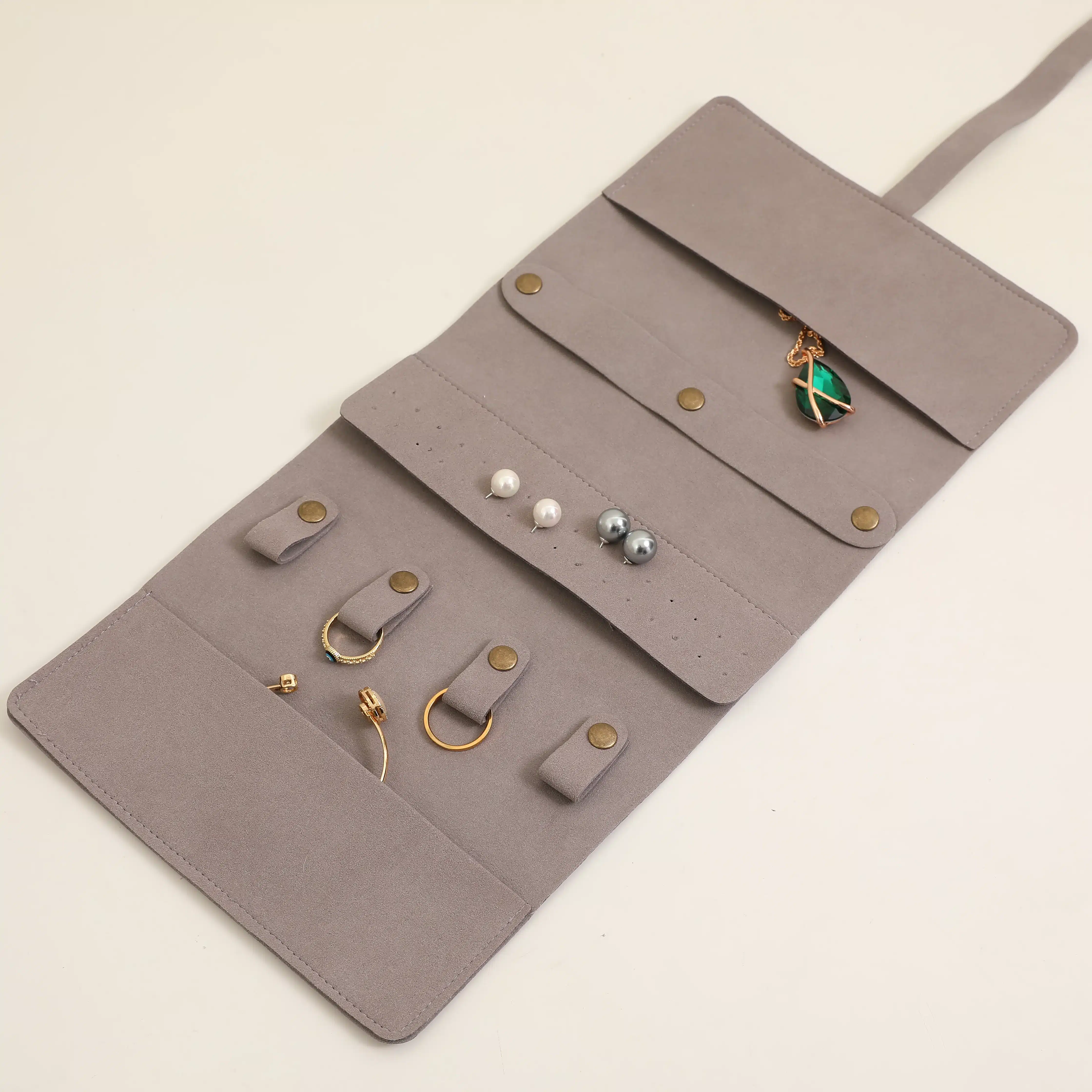 Custom Logo Foldable 1mm Microfiber Velvet Jewelry Organizer Pouch Roll up Microfiber Bag Travel Leather Jewelry Pouch for Women