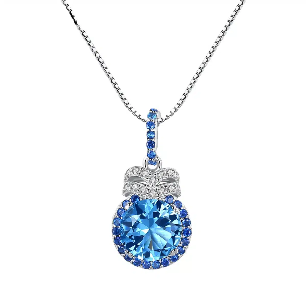 Custom New Arrival Simple Fine Jewelry Sapphire Necklace High End Women’s Jewelry 925 Sterling Silver Topaz Stone Necklace
