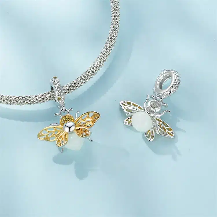 Custom Wholesale Bee Luxury Moonstone Diy Bracelet Charm Animal Gold Filled 3d Sterling Silver Fine Jewelry Pendants Charms