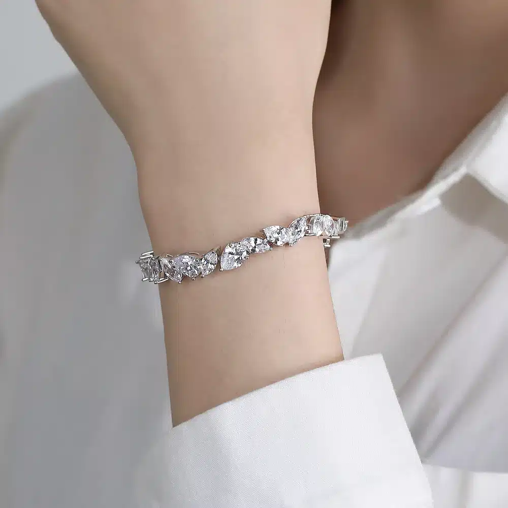 Key attributes Bracelets or Bangles Type:Tennis Bracelets Jewelry Main Material:925 Silver Main Stone:ZIRCON Plating:Rhodium Plated Gender:Women’s Style:Trendy Shapepattern:Geometric Occasion:Party