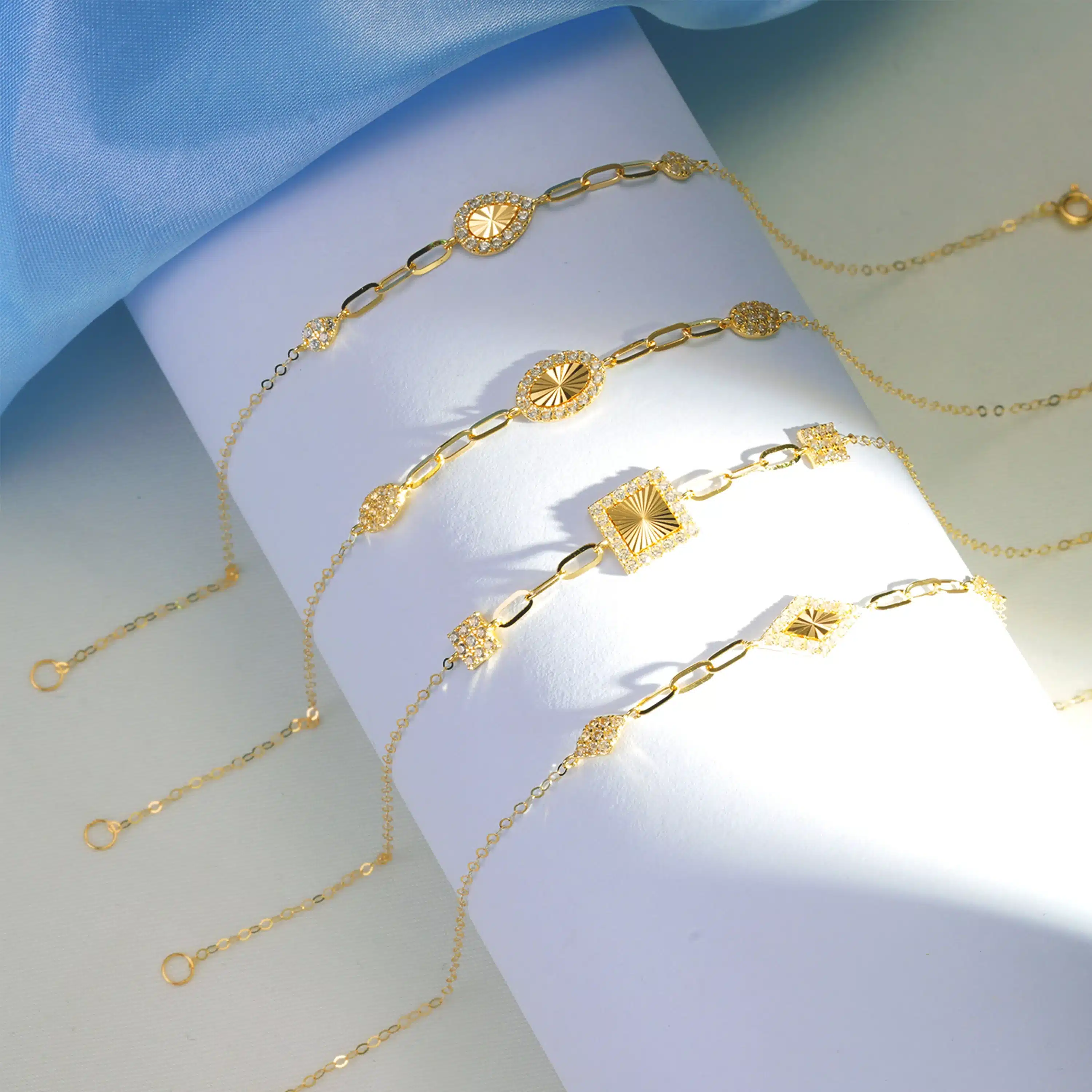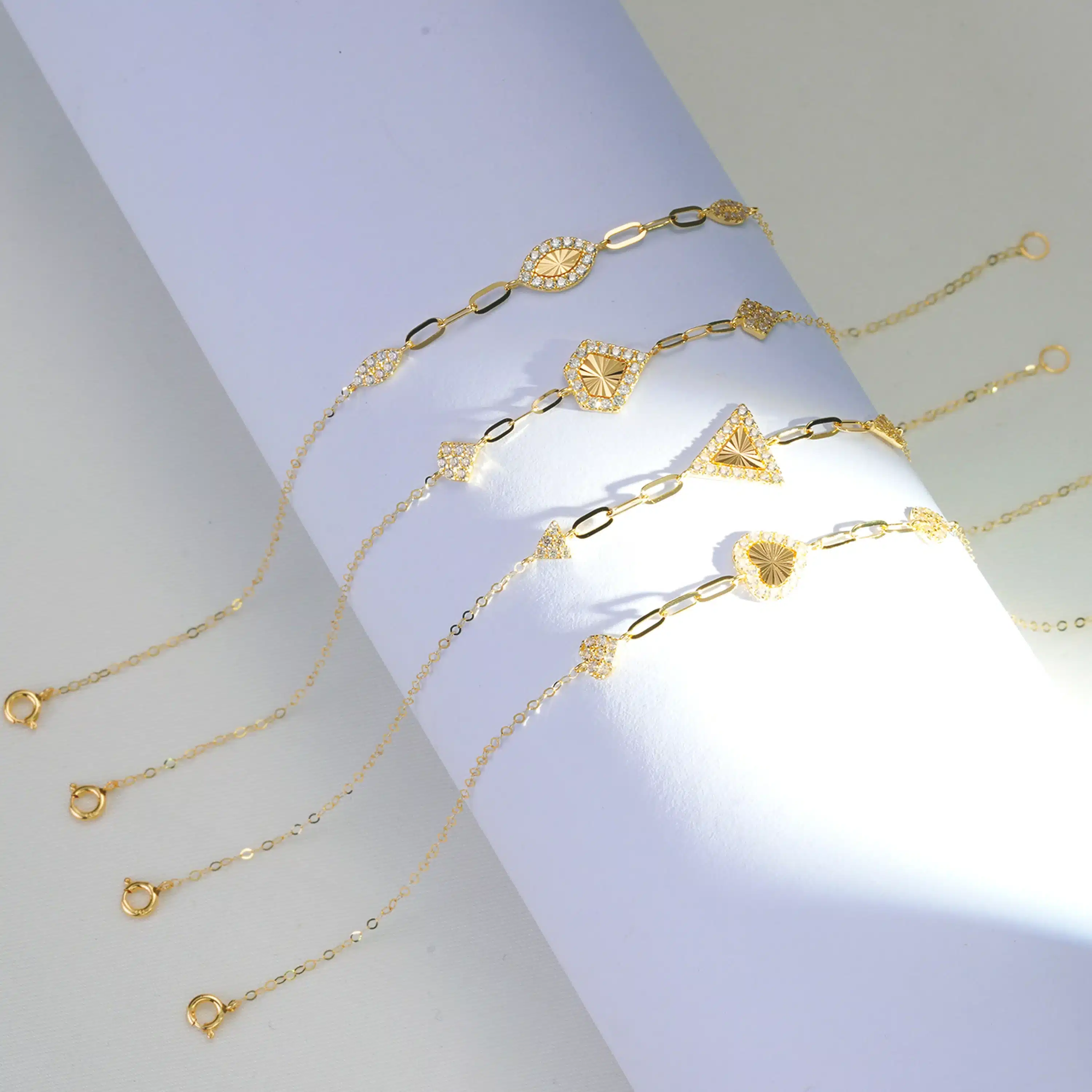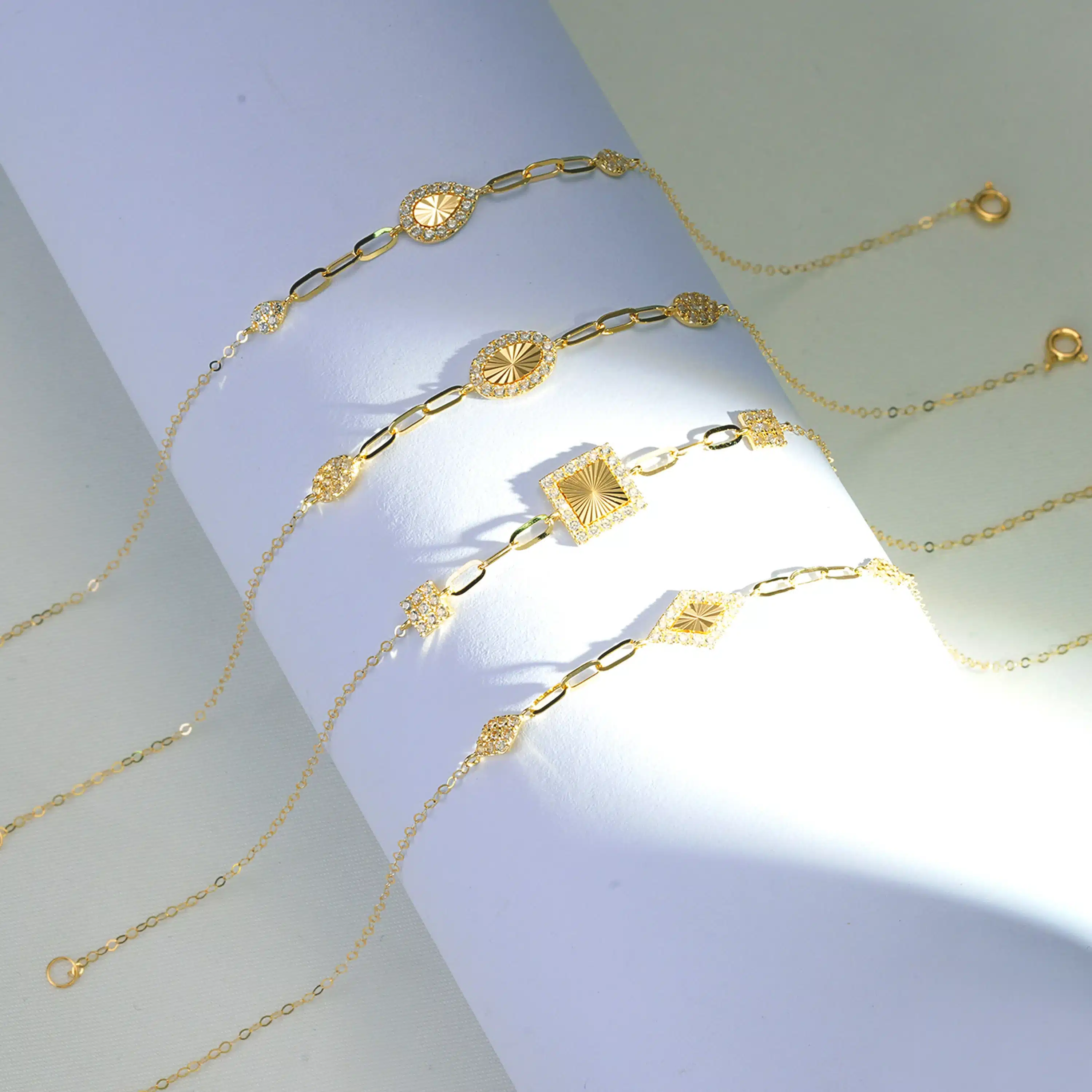 Customizable 18k Gold Jewelry Wholesale Bracelet Fine Jewelry 18k Pure Gold Chain Heart Drop Irregular Charm Women Bracelet