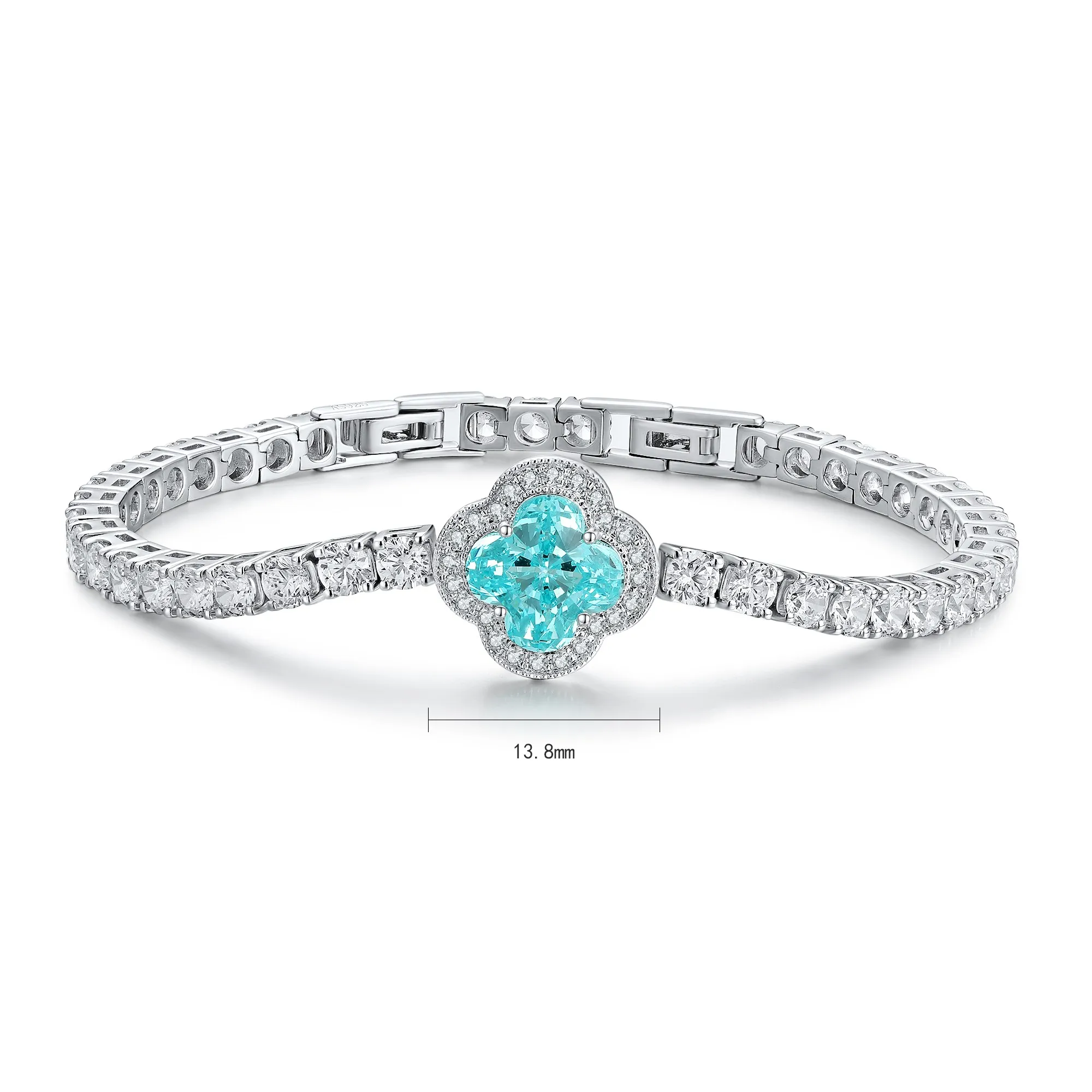 Customizable S925 Silver Bangles Chain Bracelet for Women Rhodium Lab Grown Paraiba Natural Gemstones for Gift Party OEM ODM