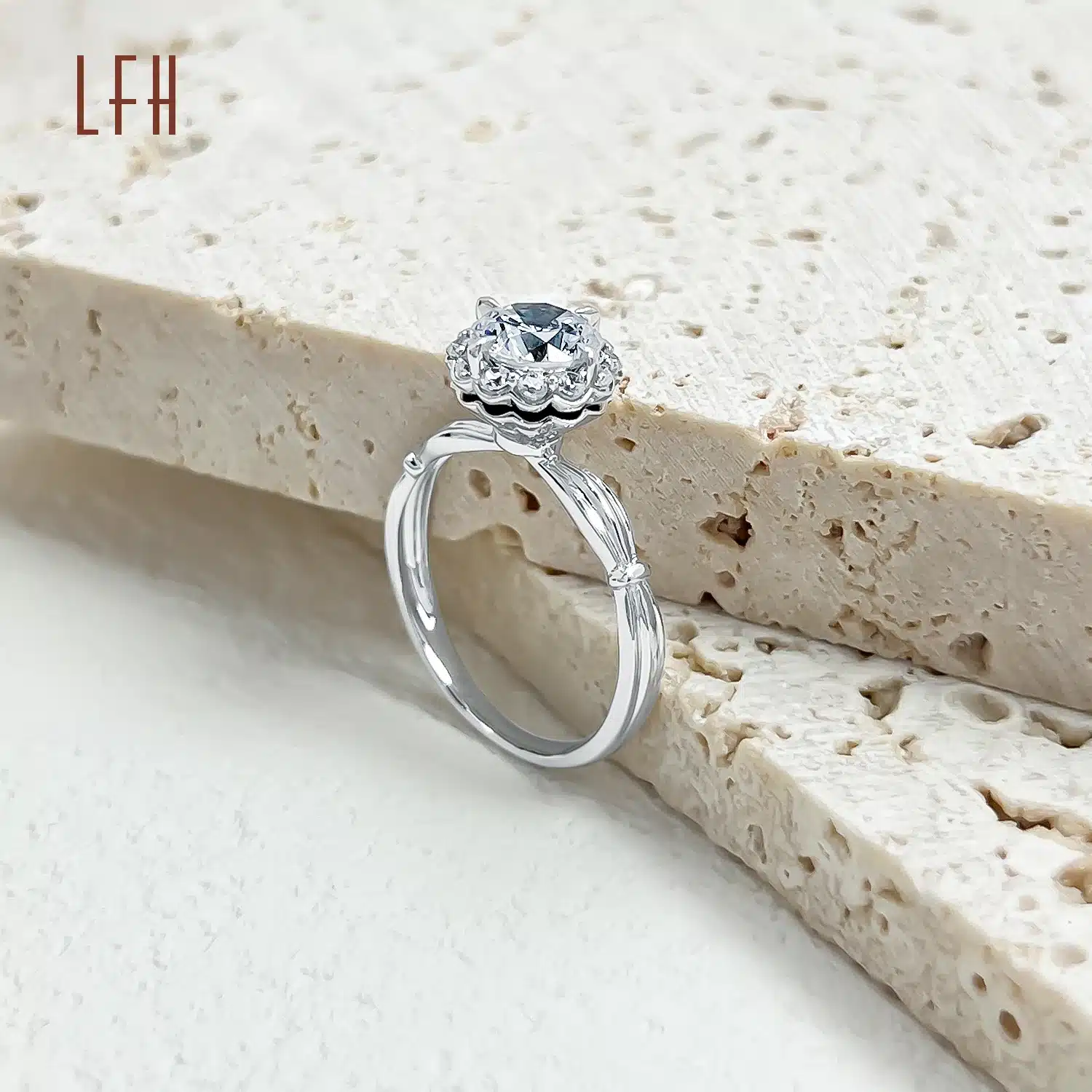 Customized 1ct 18k Gold Moissanite Diamond Halo Ring Moissanite Engagement Ring