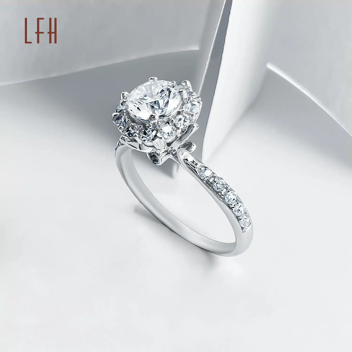 Wholesale Gold 18k Bling Moissanite Ring Simple Flower Bloom Ring Jewelry 18k Real Gold With Moissanite Rings