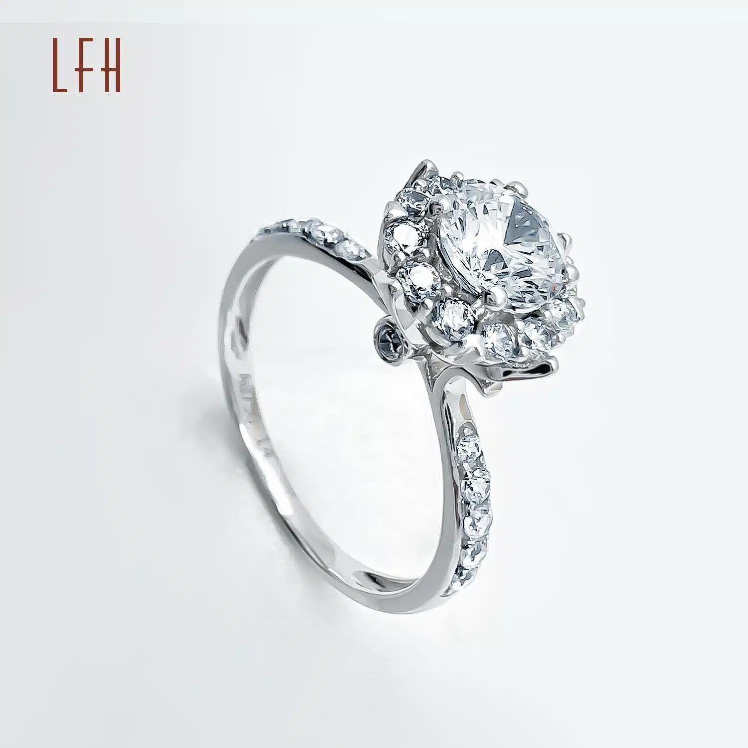 Customized 1ct 18k Gold Moissanite Diamond Halo Ring Moissanite Engagement Ring