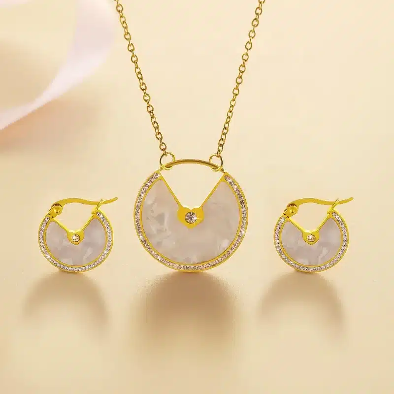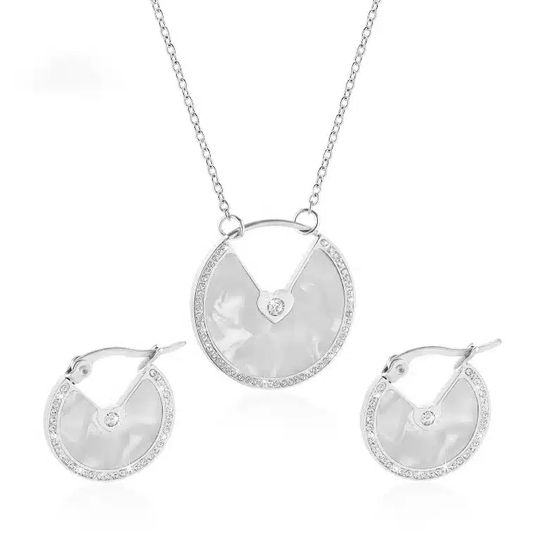 Be the first to review “Customized Boutique New Set Simple Temperament Love White Mother of Pearl Stainless Steel Necklace Earrings Accessories” Cancel reply