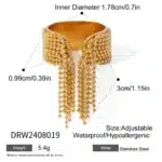 Be the first to review “Customized Electroplate Tassel Ring 18k Gold Opening Ring Stainless Steel Outdoor Women Ring” Cancel reply