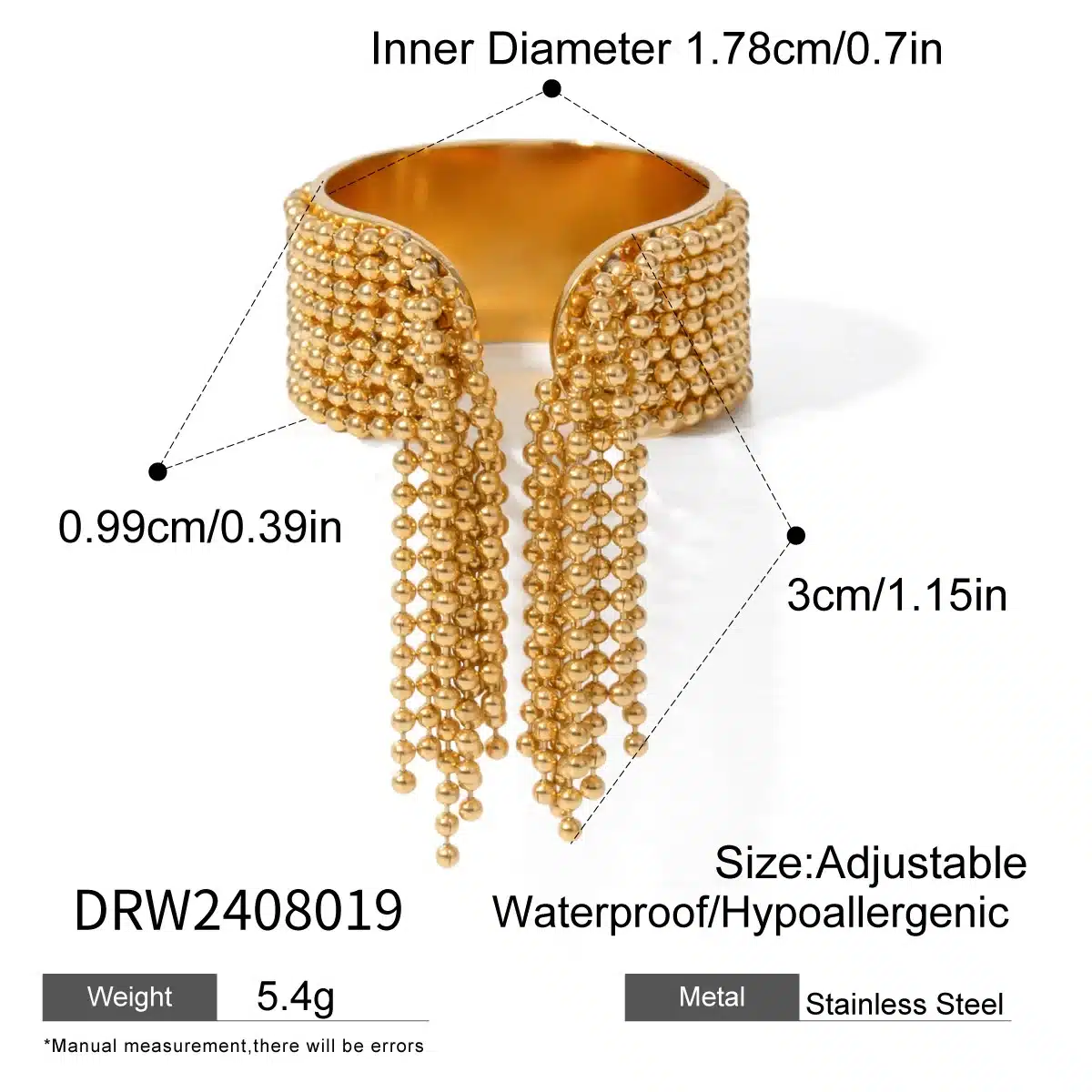 Be the first to review “Customized Electroplate Tassel Ring 18k Gold Opening Ring Stainless Steel Outdoor Women Ring” Cancel reply