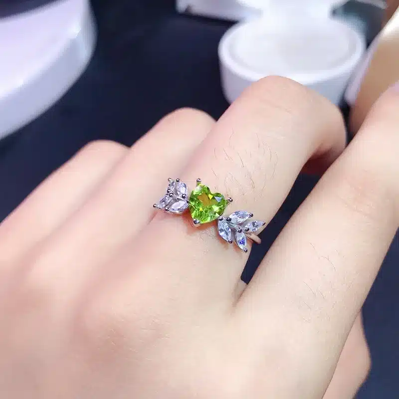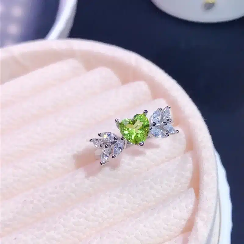Cute Natural Peridot S925 Silver Fine Ring Rhodium Plated Jewelry Heart 6*6mm Heart Cut Gemstone Fast Delivery