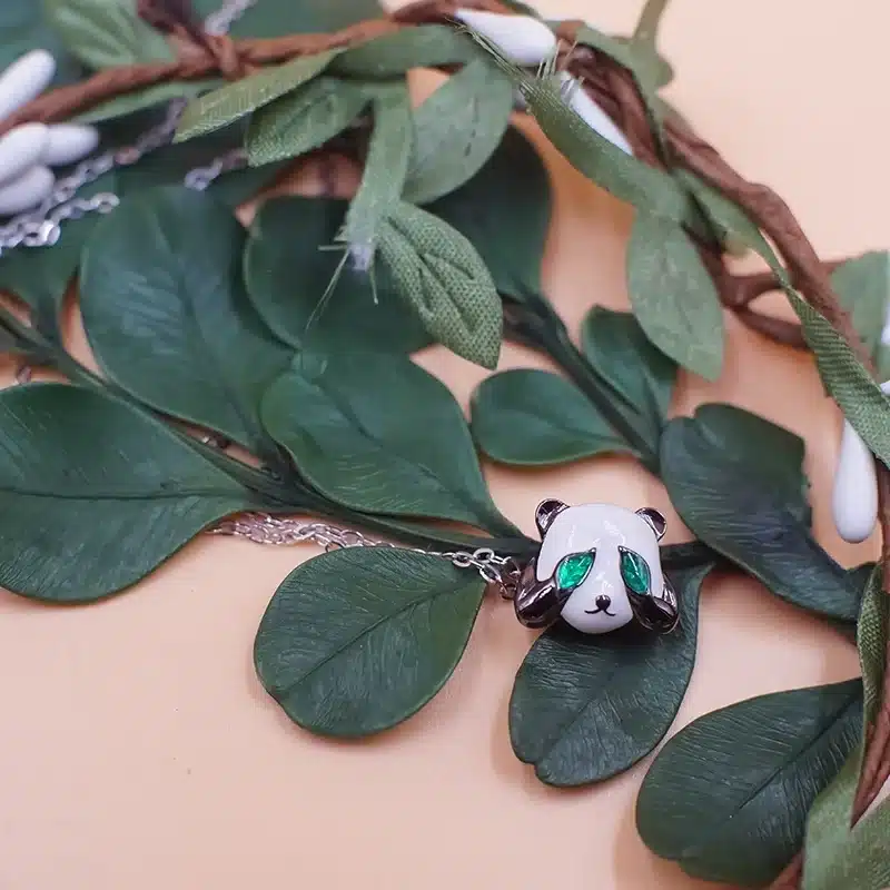 Be the first to review “Cute Panda Pendant Necklace for Women Solid 925 Sterling Silver Black Rhodium White Green Enamel Zircon for Anniversary Gift”