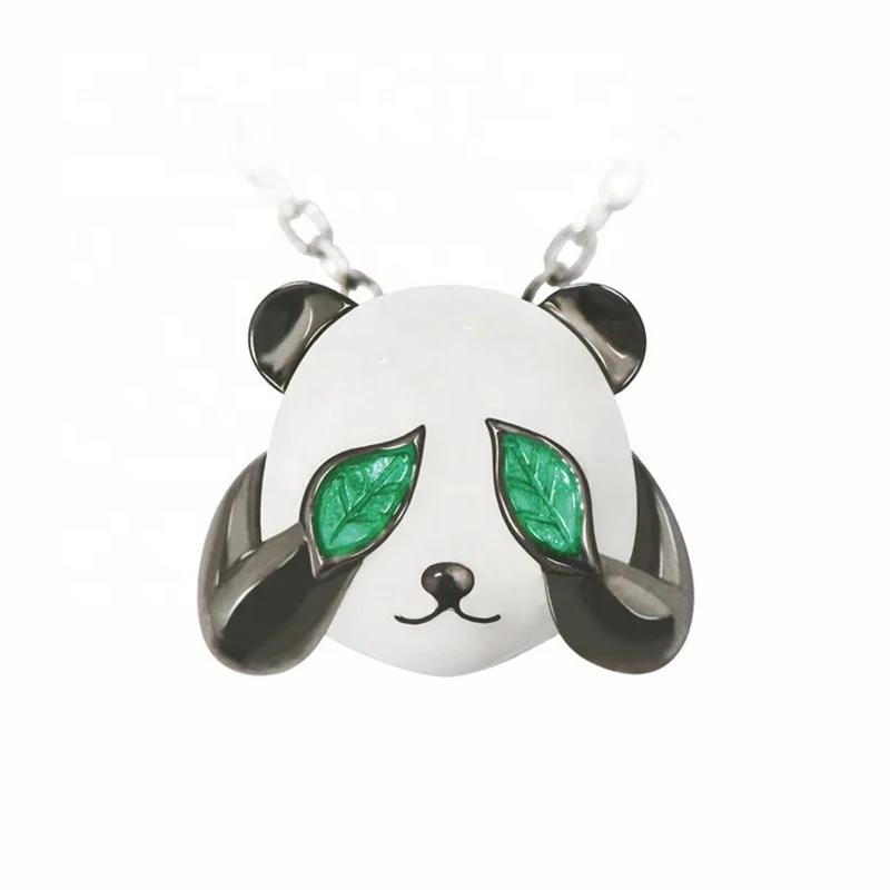 Cute Panda Pendant Necklace for Women Solid 925 Sterling Silver Black Rhodium White Green Enamel Zircon for Anniversary Gift