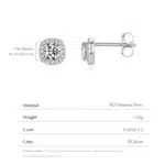 Key attributes Main Stone:Moissanite Earrings Type:Stud Earrings Plating:Rhodium Plated, Platinum Plated Style:Classic Shape:Square Jewelry Main Material:925 SILVER Occasion:Other, Anniversary, Gift,