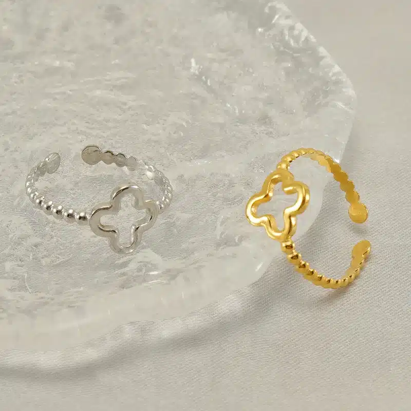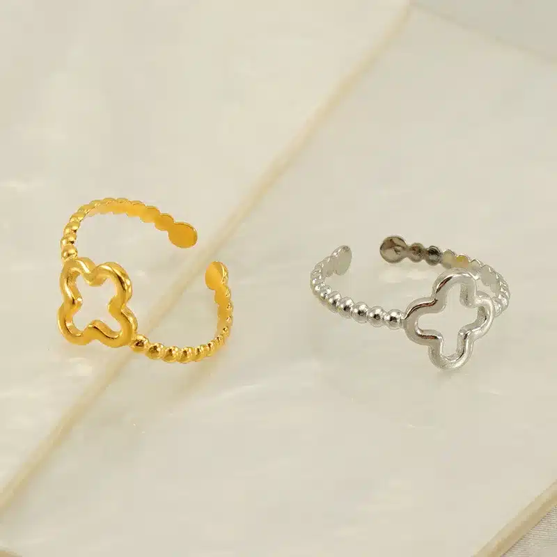 Be the first to review “Dainty Waterproof 18K Gold Plated Stainless Steel Jewelry Open Adjustable Four Leaf Clover Finger Rings for Women” Cancel reply