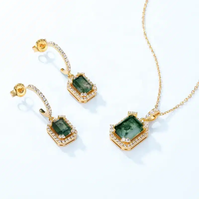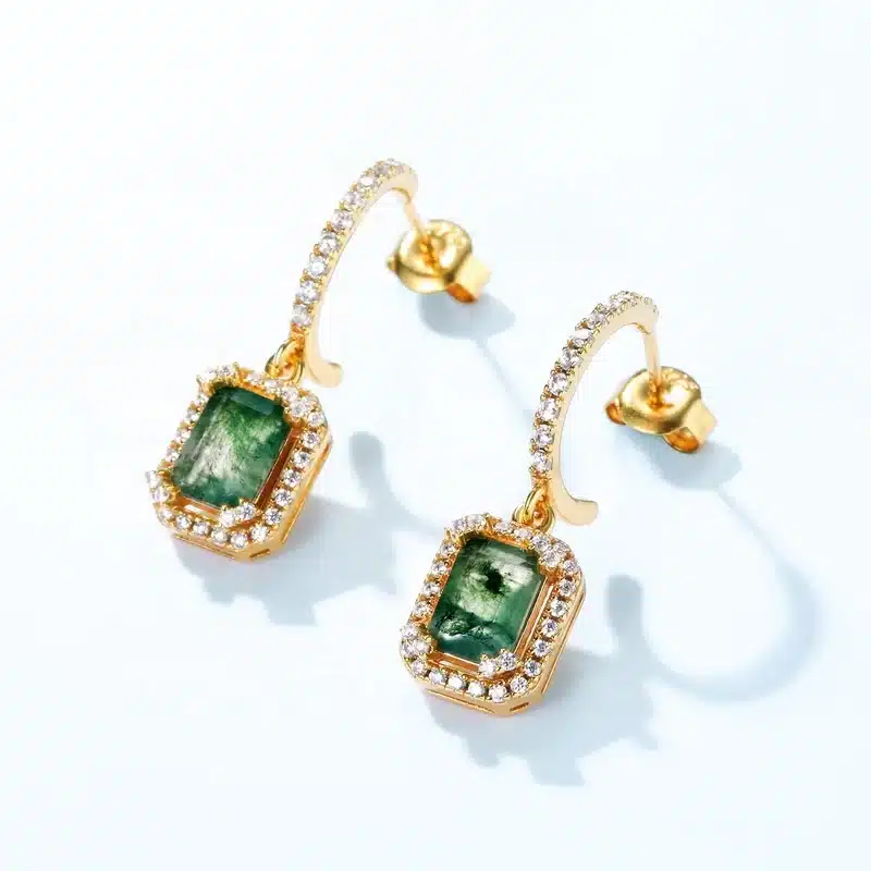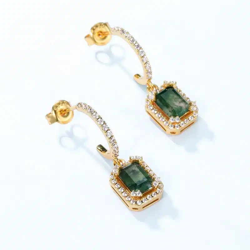 Be the first to review “Dainty Wedding Jewelry 925 Sterling Silver Green Gemstone Stud Earring 18K Gold Plated Rectangle Moss Agate Drop Earrings” Cancel reply