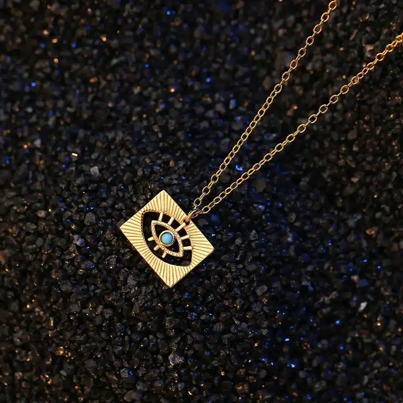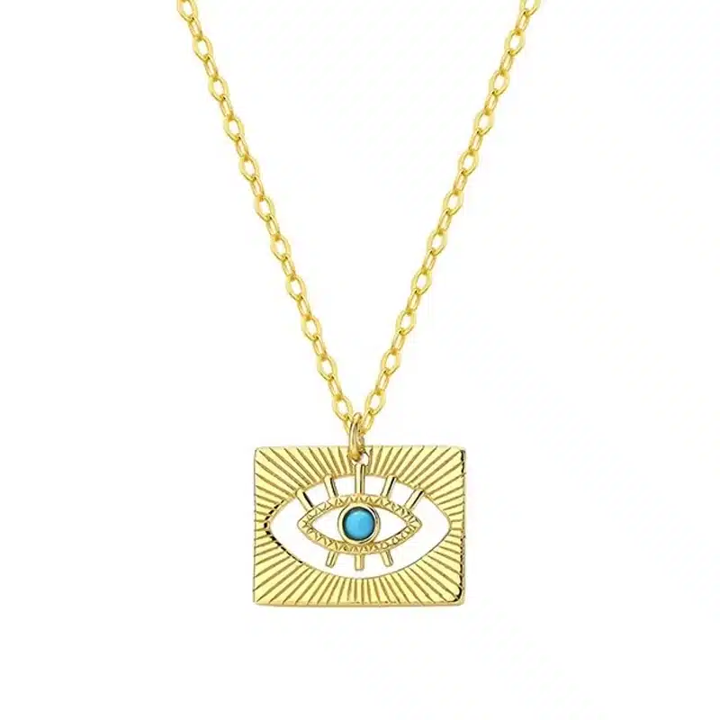 Be the first to review “Damila 925 Sterling Silver Statement Jewelry 18k Gold Plated Hollow Out Turquoise Evil Eye square Coin Necklace Women” Cancel reply