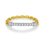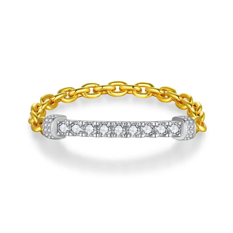 DE Cool Chic Iced Fashionable 925 Sterling Silver Jewelry Striking Moissanite Gemstone Cuban Chain Ring