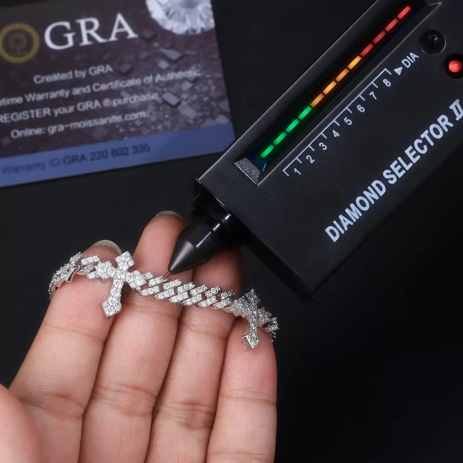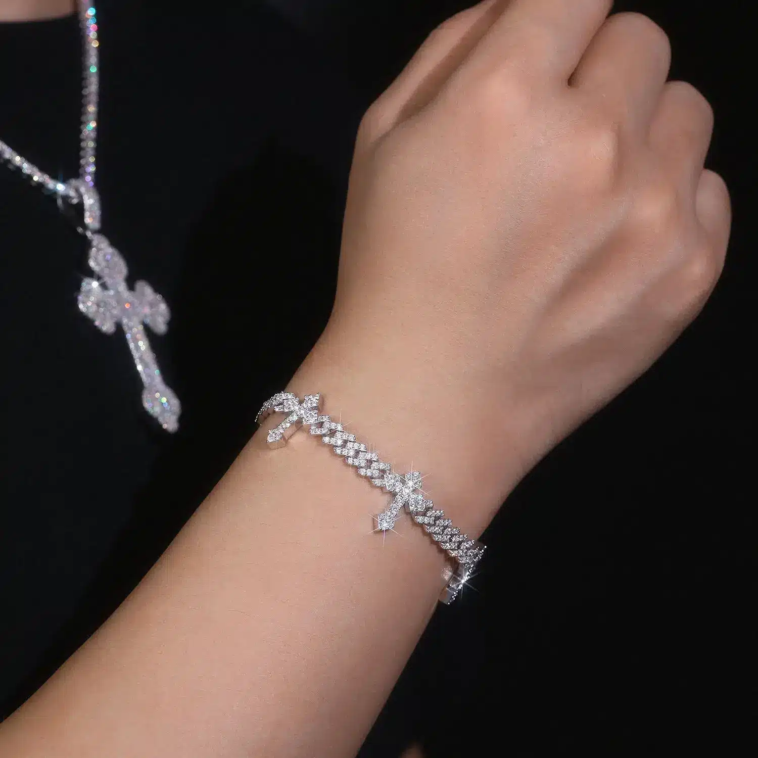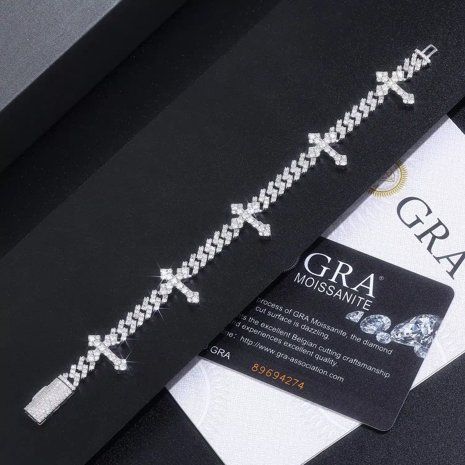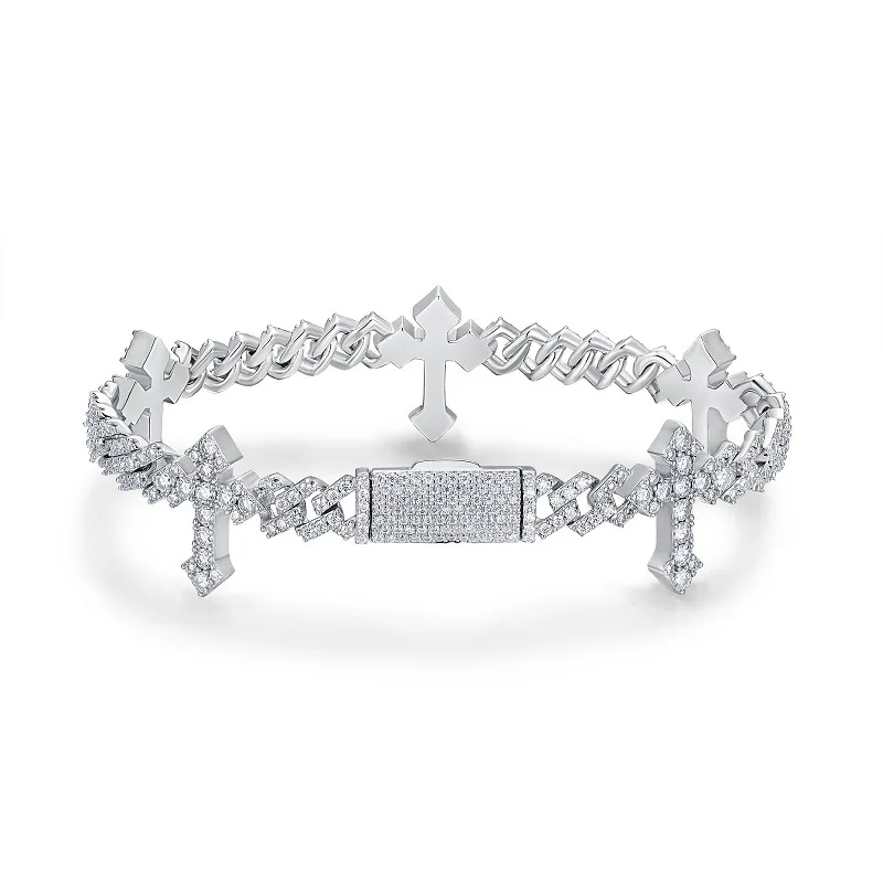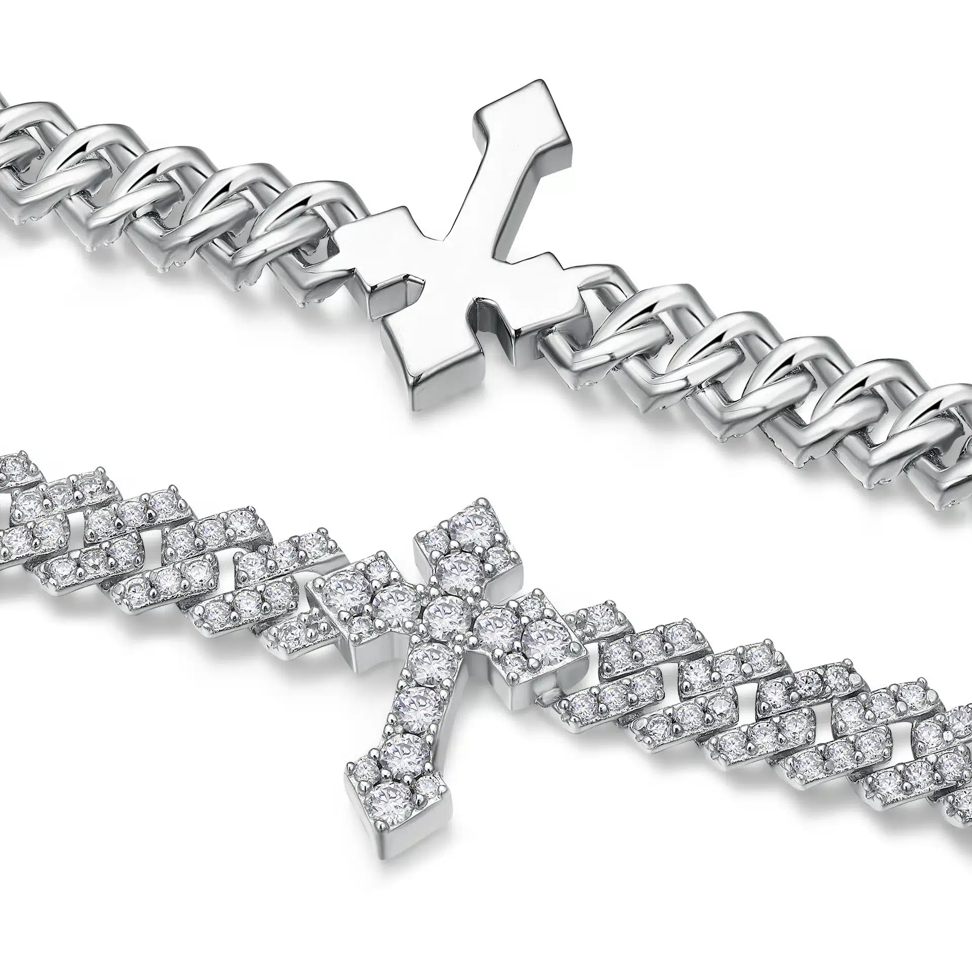 DE Hip Hop Iced Out Moissanite Cross Cuban Chain New Moissanite Cross Cuban Bracelet 925 Silver Hip Hop Men Women Cross Chain