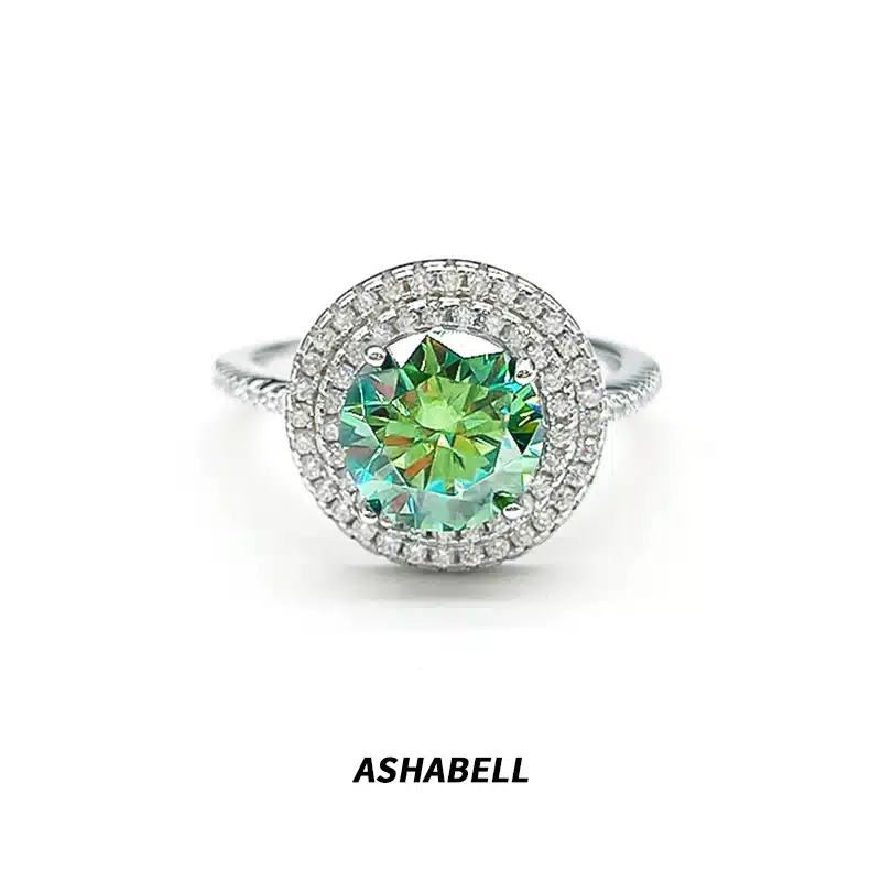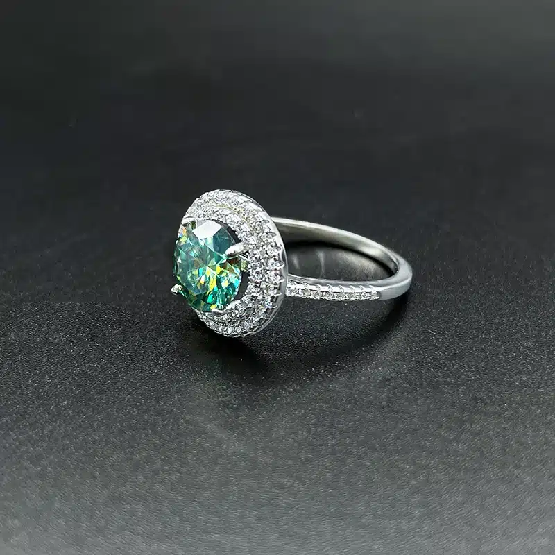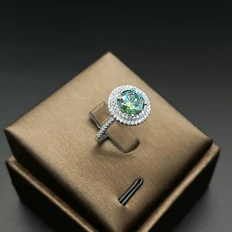 Be the first to review “Delicate Niche Four Claw Round S925 Sterling Silver 2 Carat Green Moissanite Full Diamond Ring” Cancel reply