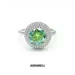 Delicate Niche Four Claw Round S925 Sterling Silver 2 Carat Green Moissanite Full Diamond Ring