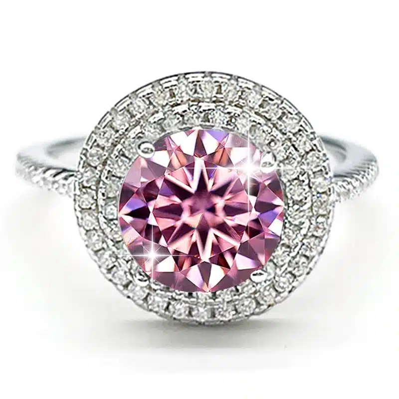 S925 Silver 1CT Round Brilliant Cut Rose Flower Engagement Half Eternity Colorful Moissanite Ring for Women