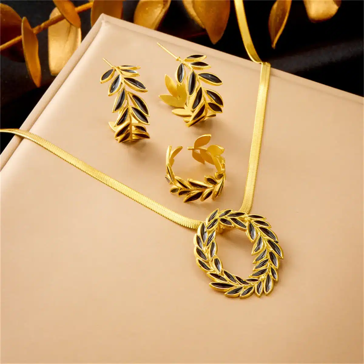 Be the first to review “Designer Large Leaf Pendants Necklace/Rings/Earrings Sets for Women Trendy Female Daily Waterproof Stainless Steel Jewelry Gifts” Cancel reply