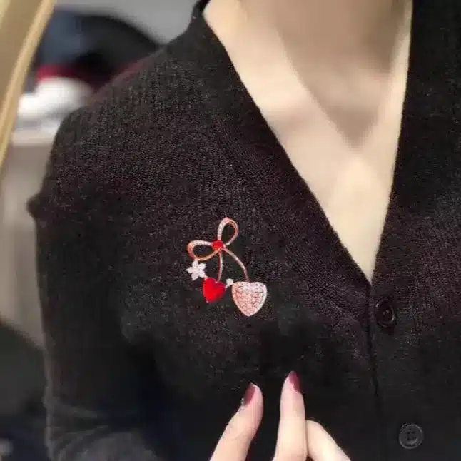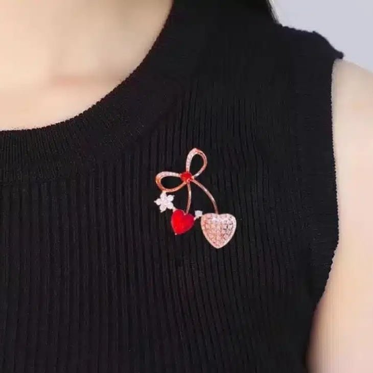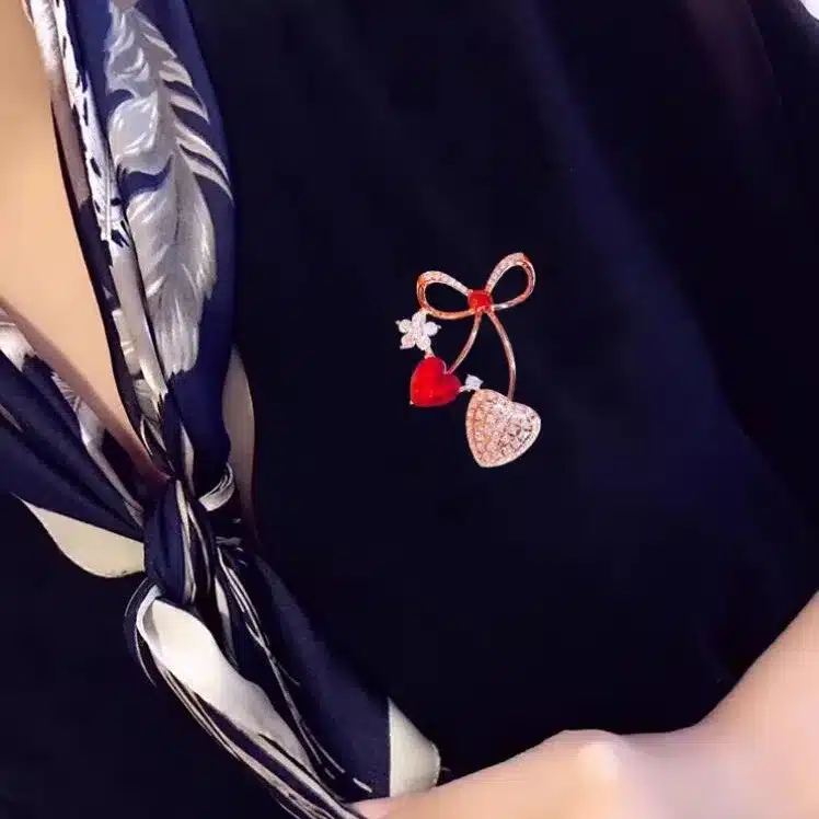 High-End Women’s Full Diamond Red Love Brooch Exquisite Corsage Pin for Autumn Winter Accessories for Party Gifts Main Alloy