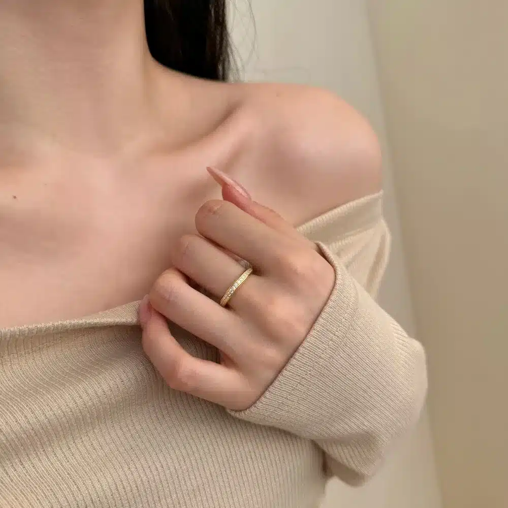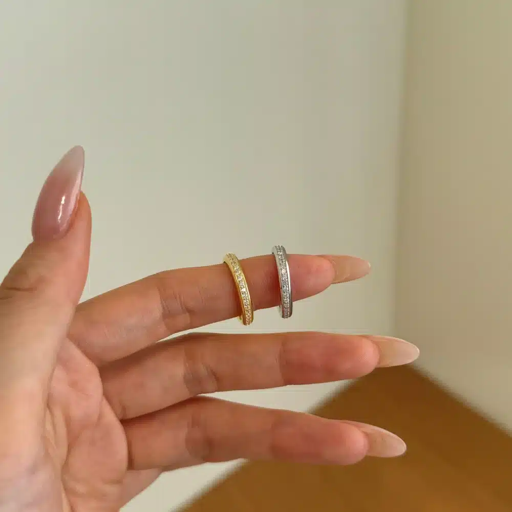Dylam Un-adjustable Coil Spring Open Ring 5A Zircon 925 Sterling Silver Gold Plated Jewelry