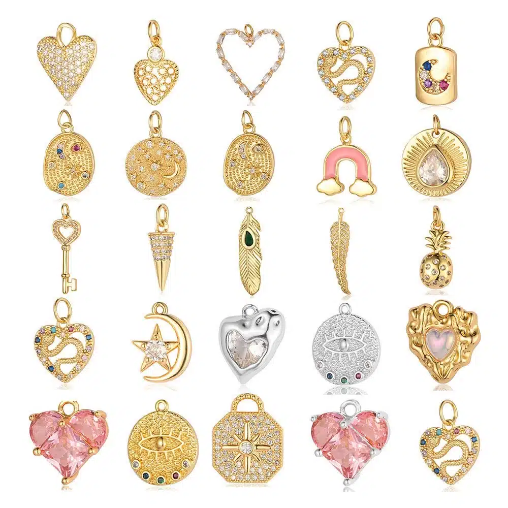 DZ009 Love Key’s Copper Zircon Pendant Rainbow Feather Gold Plated Snake Star Moon Pineapple Eyes Wholesale Accessories Charms