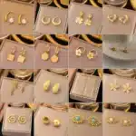EH020European American Style Love Bow Patchwork Dangle Earrings for Women Non-Fading Circle Pearl Stone Hot Cross-Border Fashion
