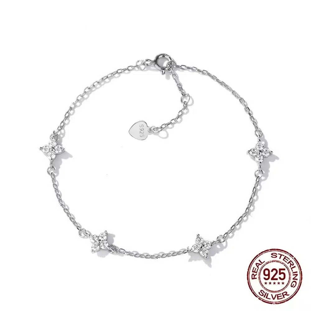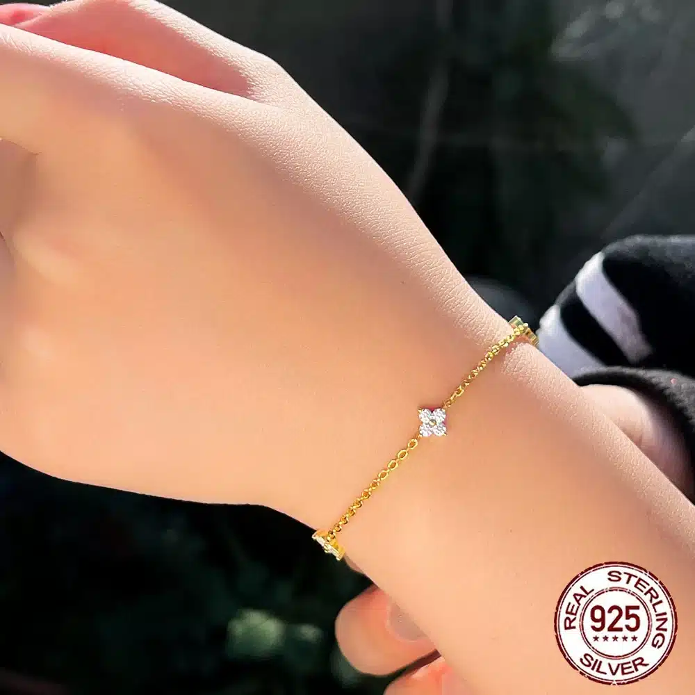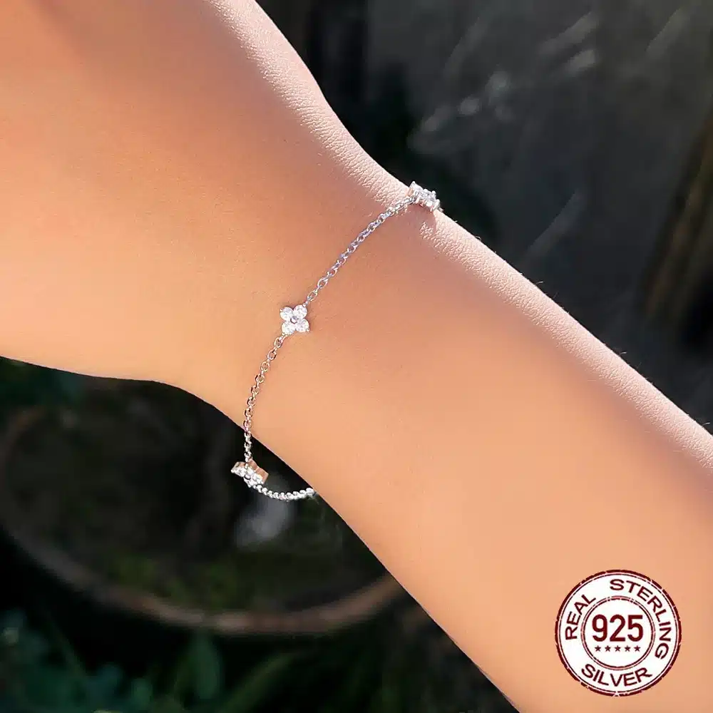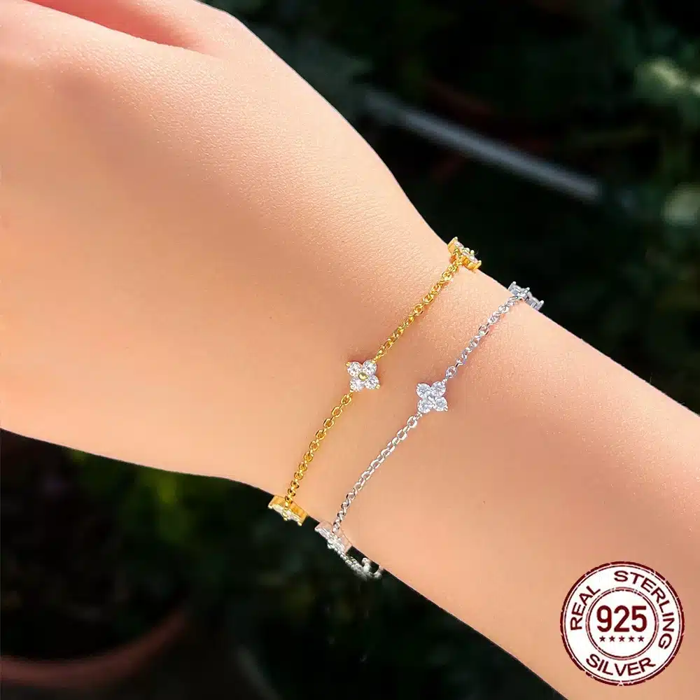 Elegant Design Luxury Jewelry Cubic Zircon Adjustable Chain Link S925 Sterling Silver Flower Shape Charm Bracelet for Women