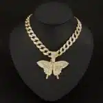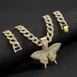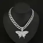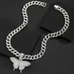 Be the first to review “European American Fashion Trend Hip Hop Clear Rhinestone Butterfly Pendant with Cuban Chain Necklace for Party for Men and Women”