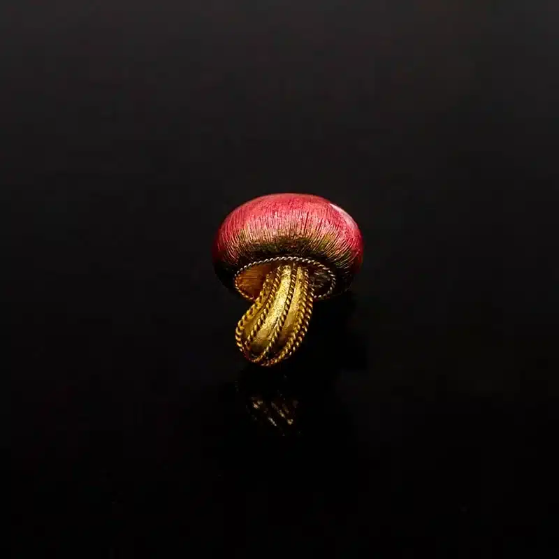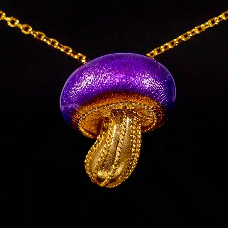Be the first to review “European American Gold Vermeil Sand Blast Designer Pendant Necklace Zircon Featuring Parachute Hot Air Balloon Enamel Mushroom” Cancel reply