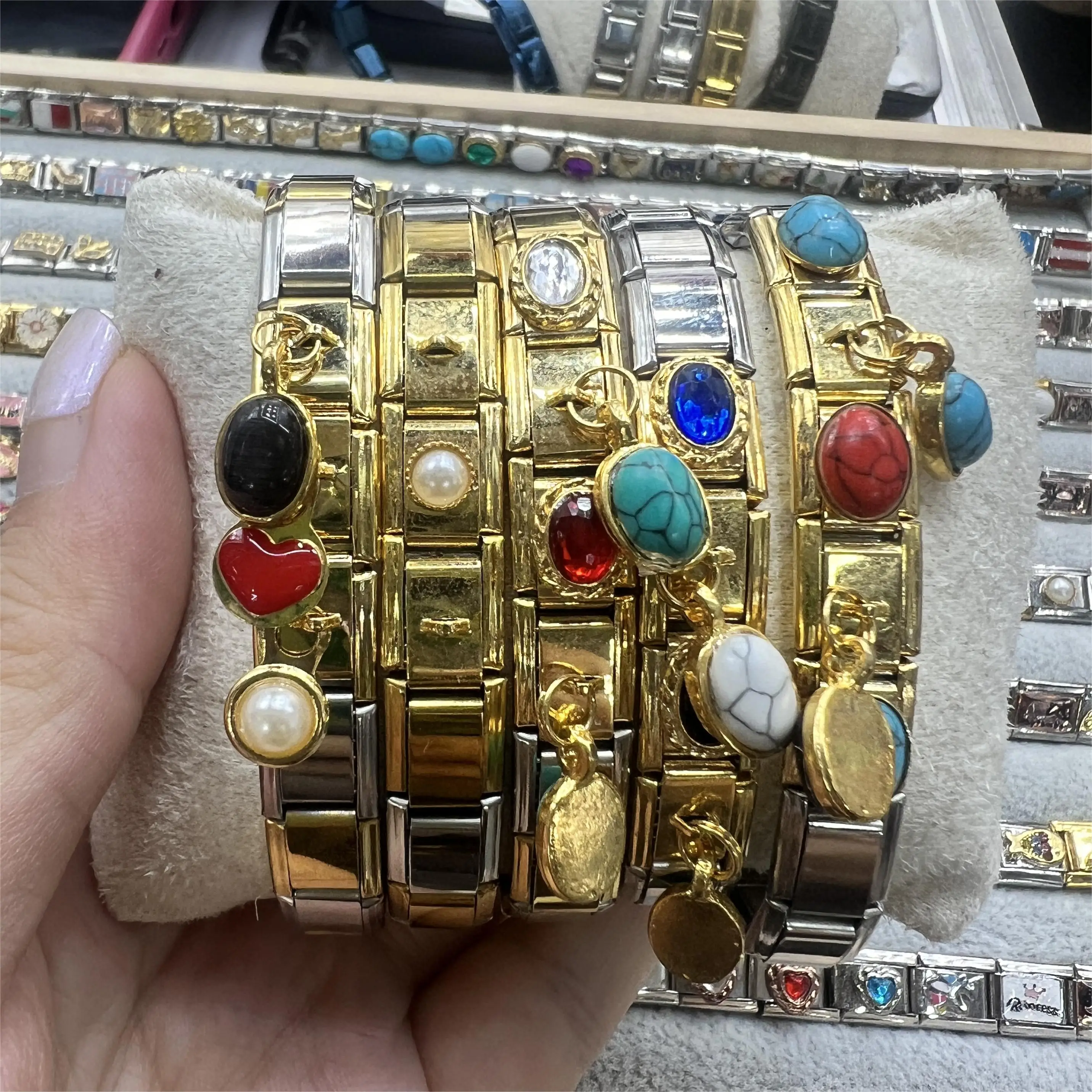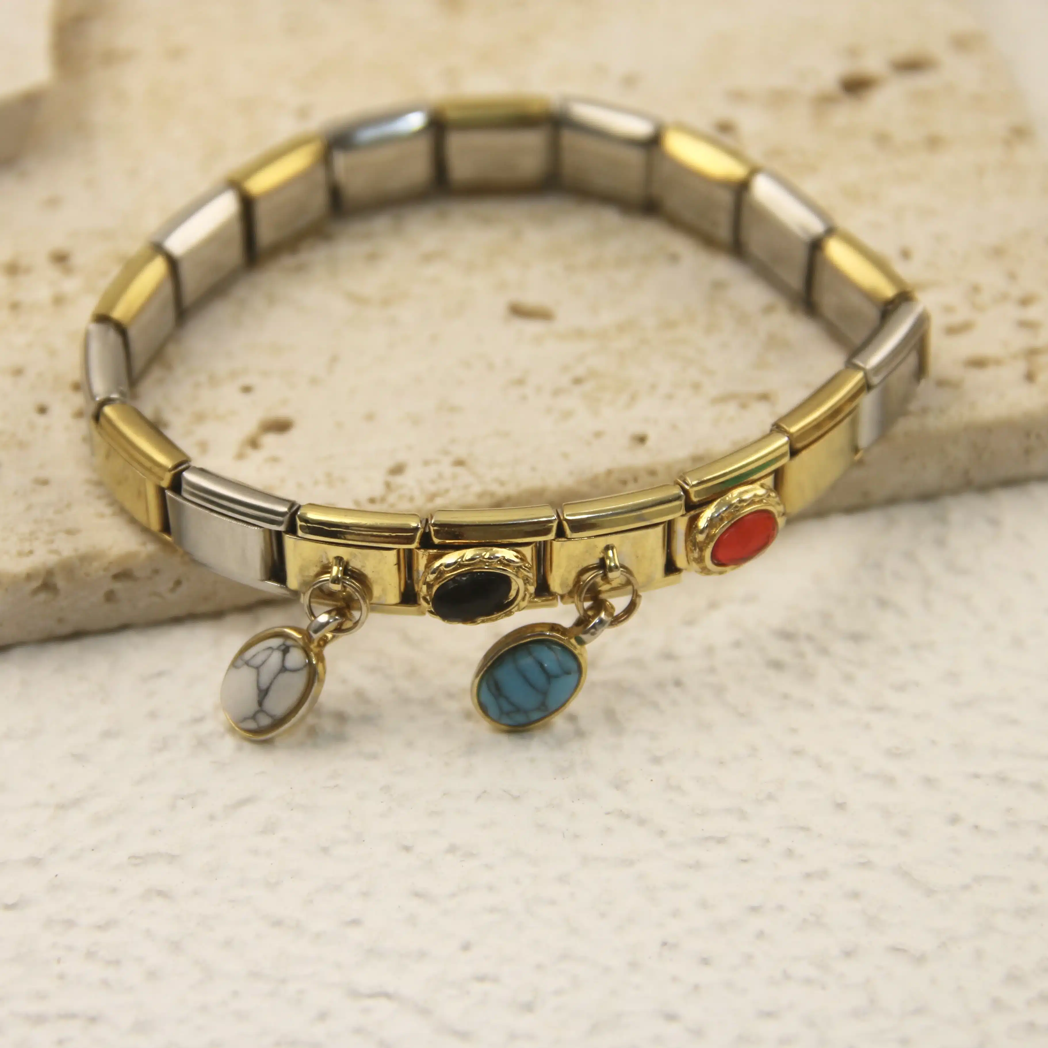 Evil Eye Nature Stone Elastic Bracelet with Detachable Rhinestone Italian Charms Accessory Clover Bracelet