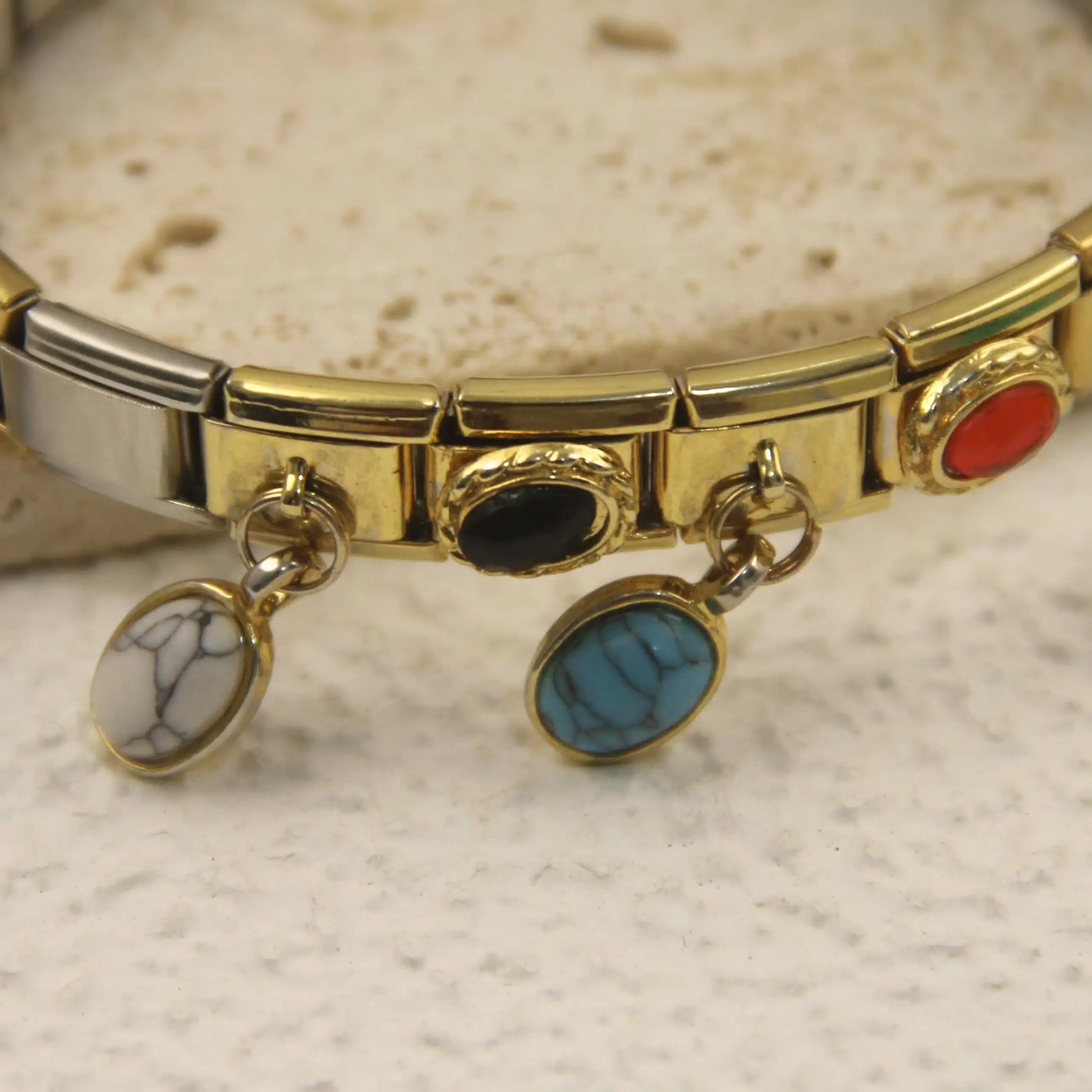 Be the first to review “Evil Eye Nature Stone Elastic Bracelet with Detachable Rhinestone Italian Charms Accessory Clover Bracelet” Cancel reply
