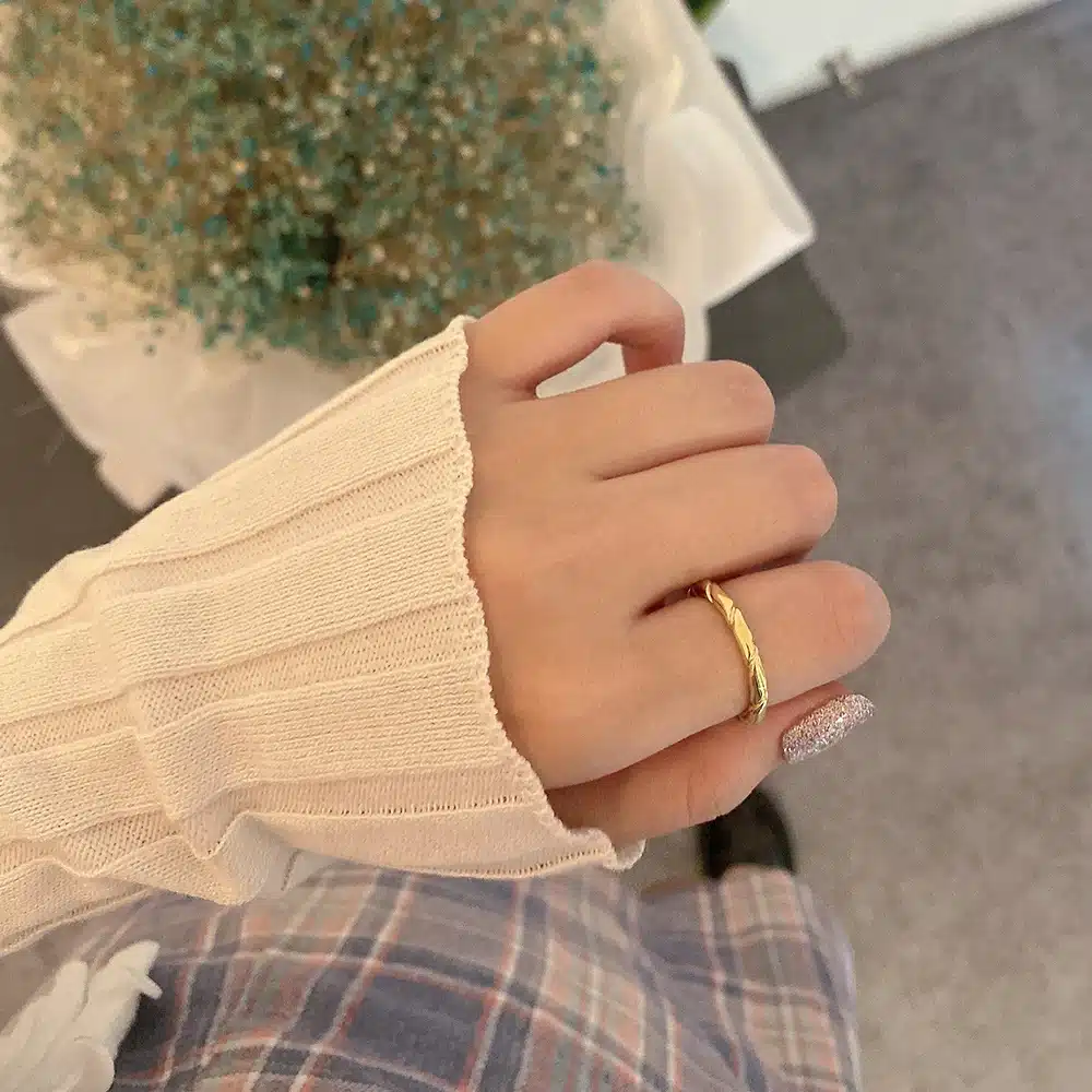 Popular 925 Sterling Silver 18k Gold Plated Jewelry Gold Leaf Ring Silver Resizable Ring Silver Ring Designs for Girl for Women