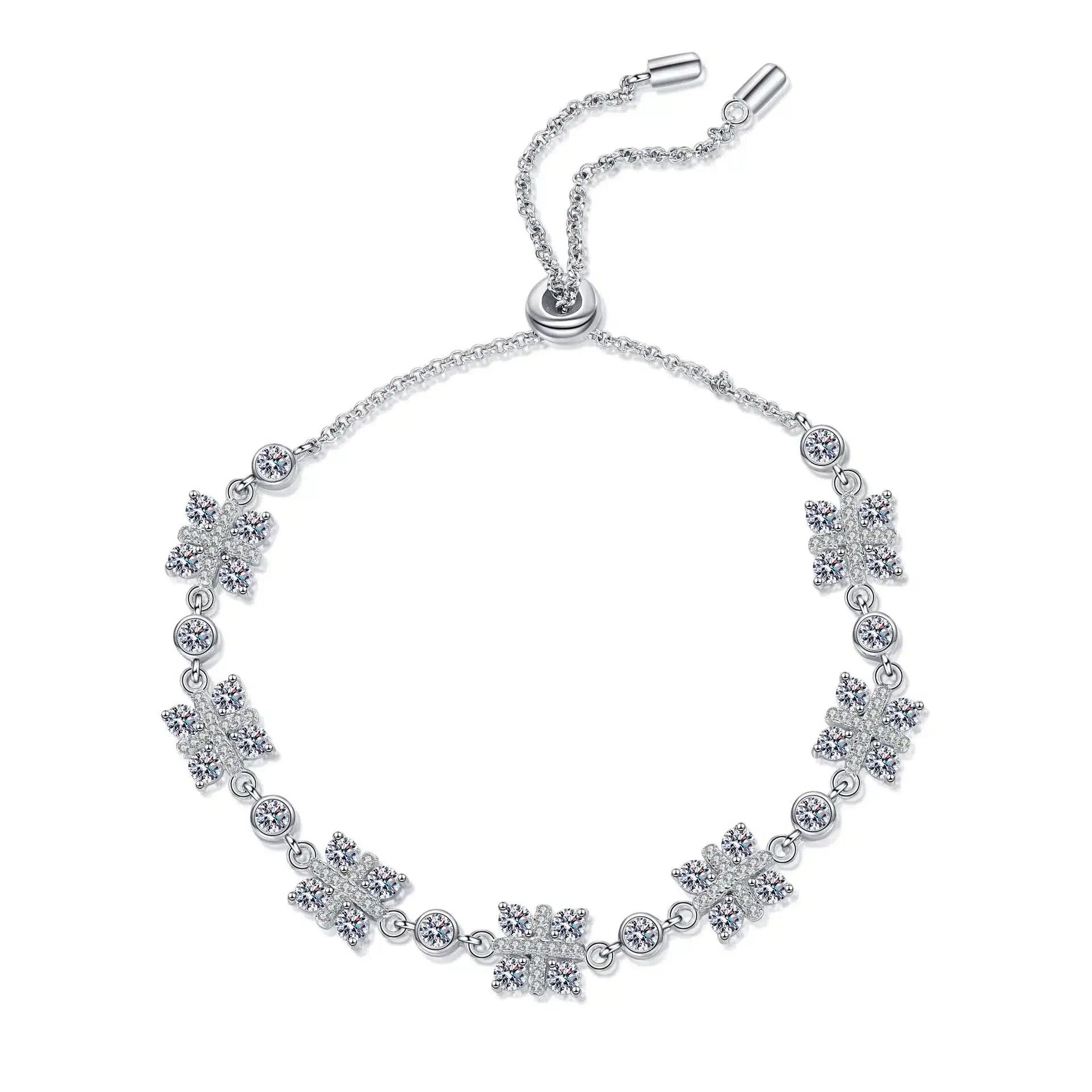 Factory Outlet Wholesale Price 925 Silver 3ct Round Cut Moissanite Gemstone Cubic Zirconia G Shape Fine Jewelry Bracelet Women
