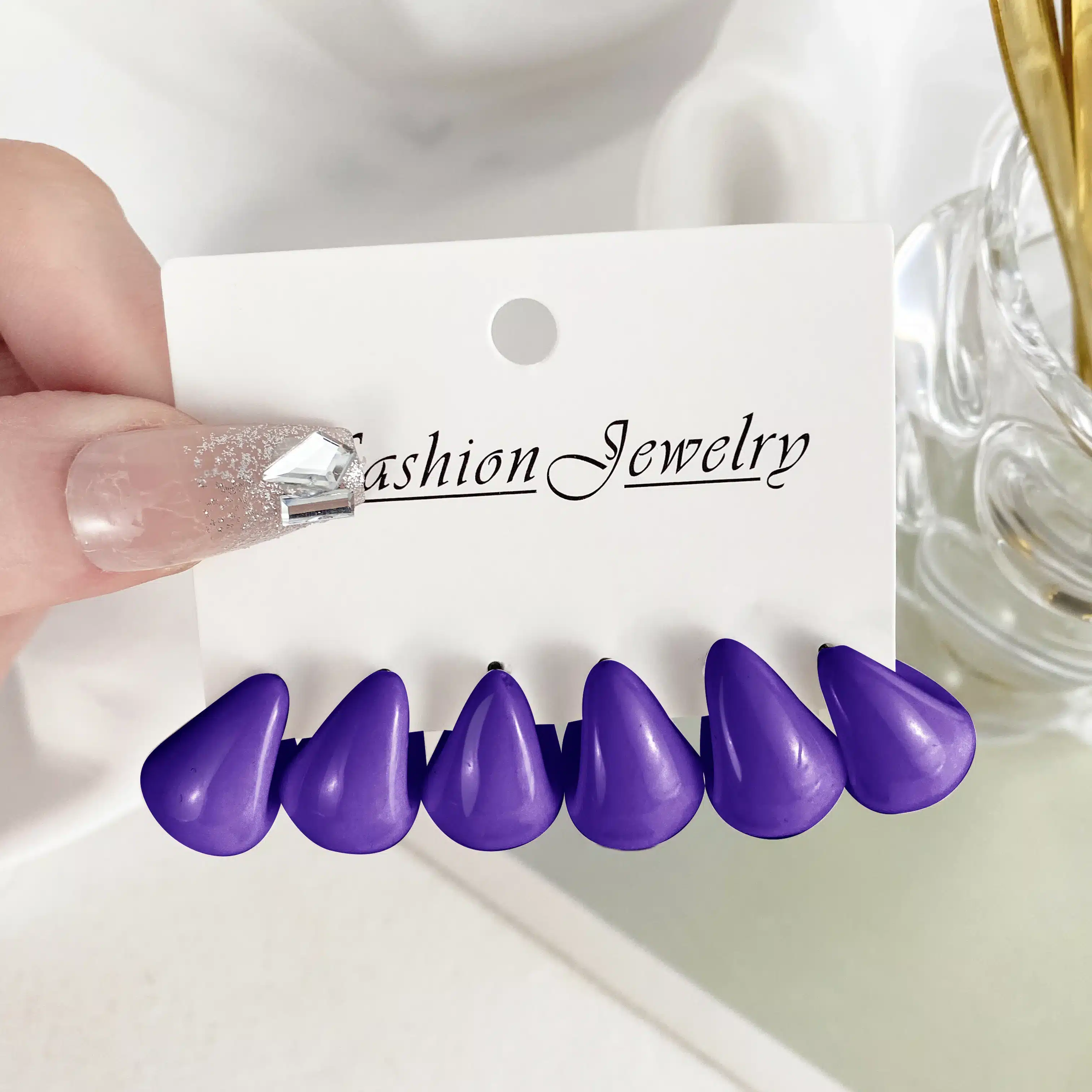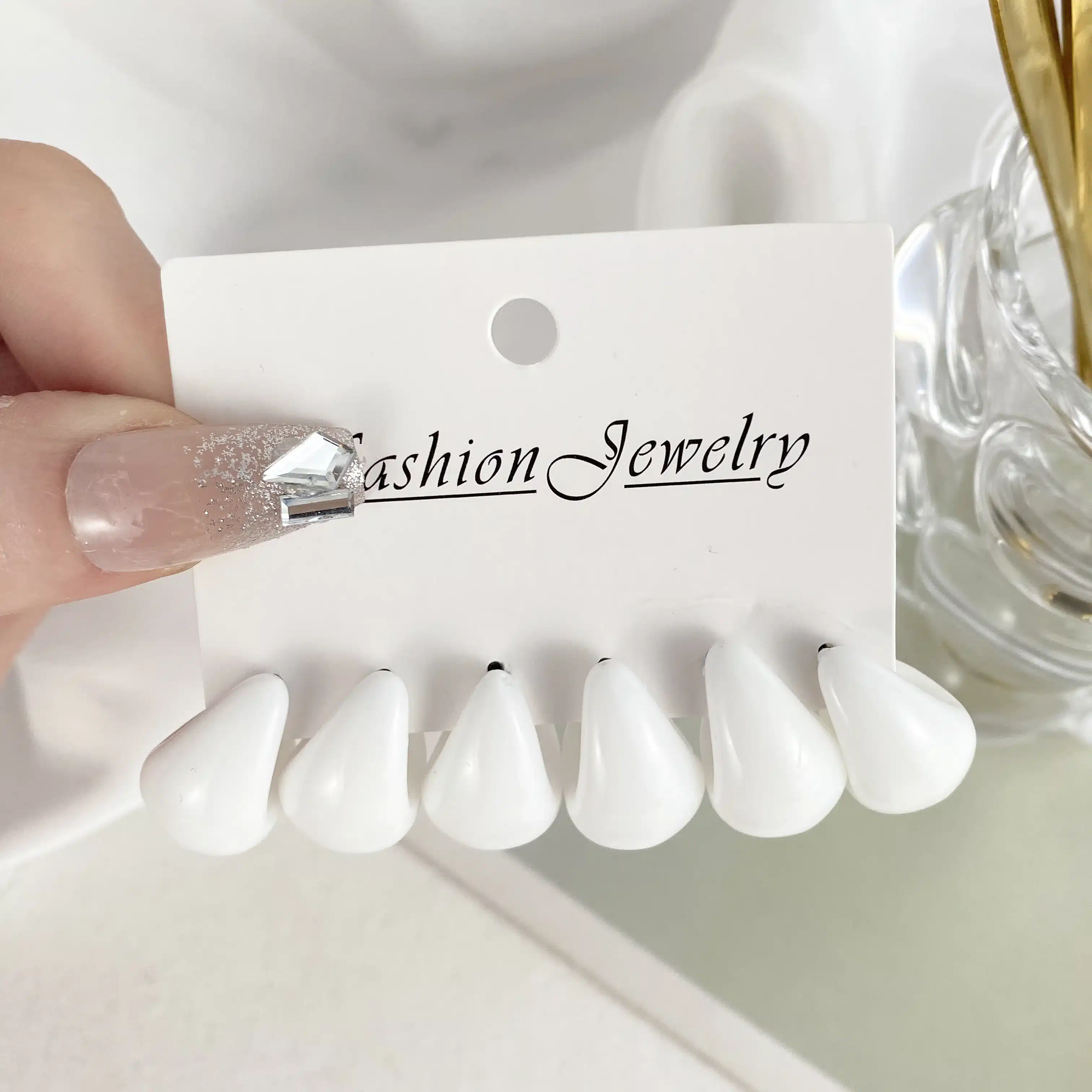 Factory New Trendy 3 Pairs/set Colorful Marble Tear Drop Acrylic Chunky Hoop Stud Earrings Set for Women Jewelry Gift