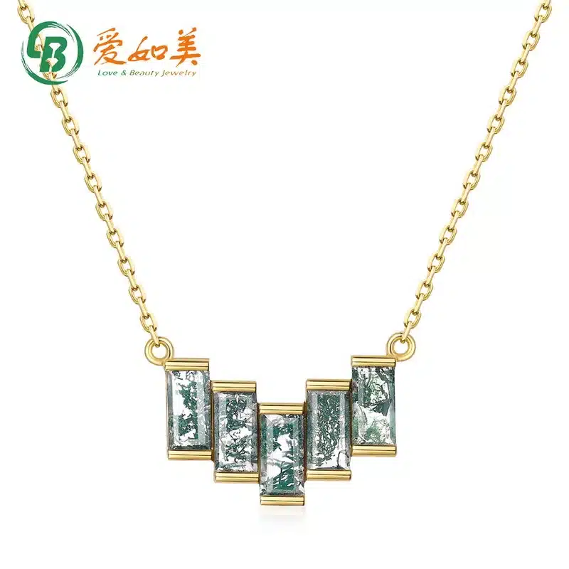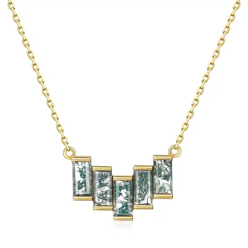 Factory Wholesale Jewelry Oem Odm S925 Sterling Silver Necklace Natural Moss 14k Gold Plated Long Chain