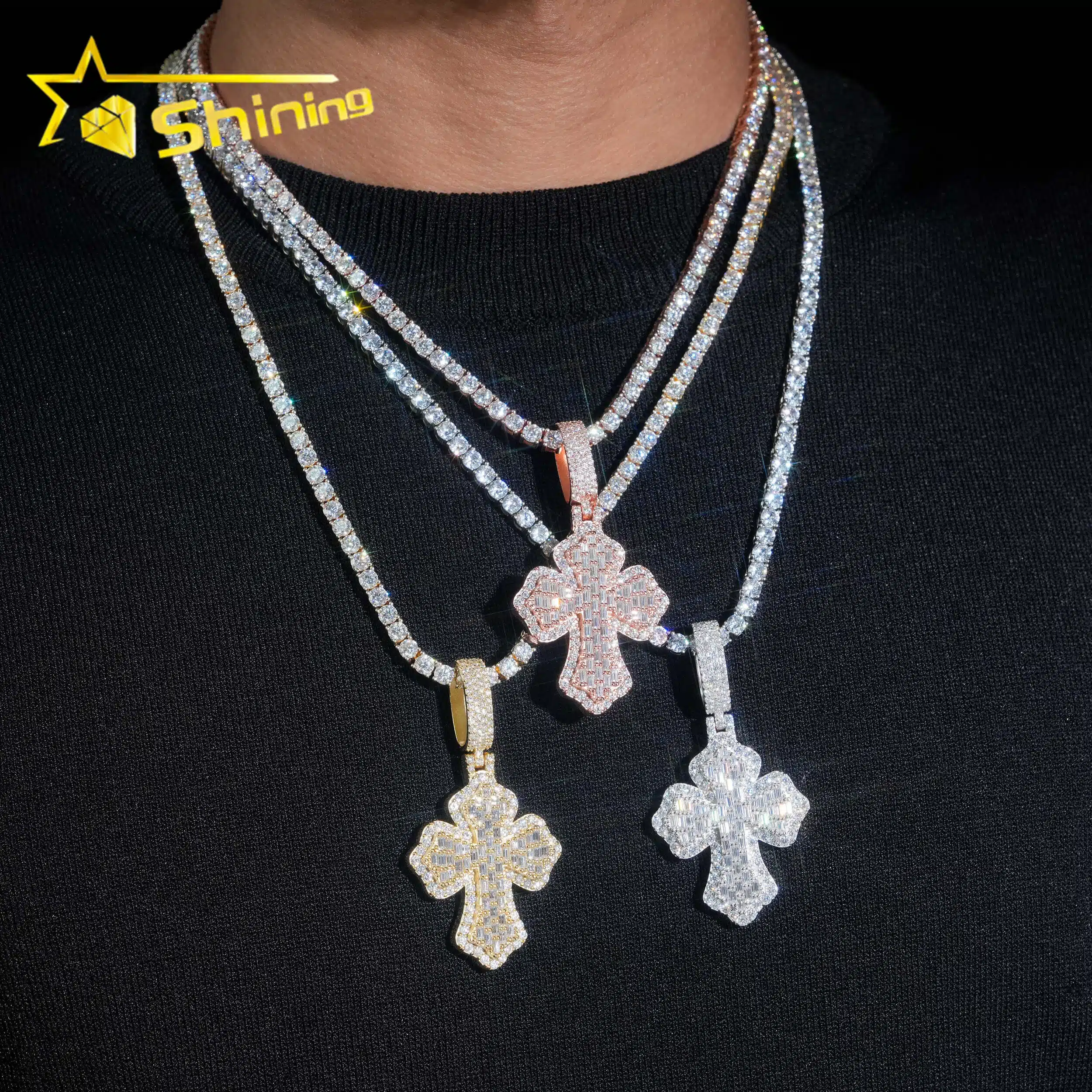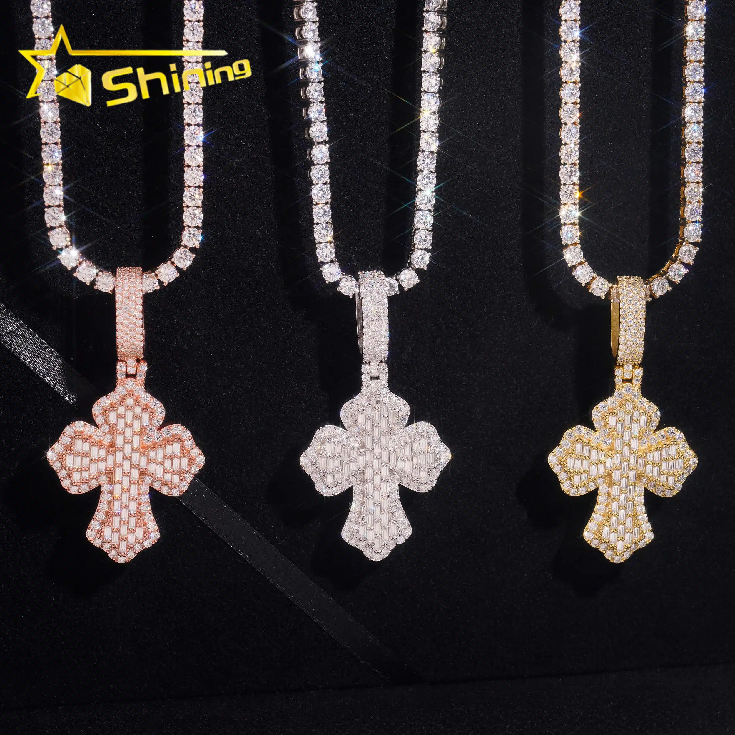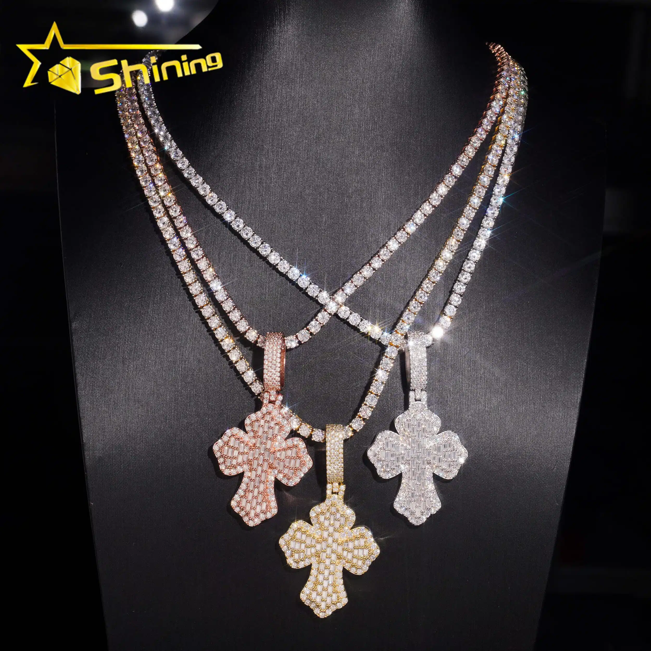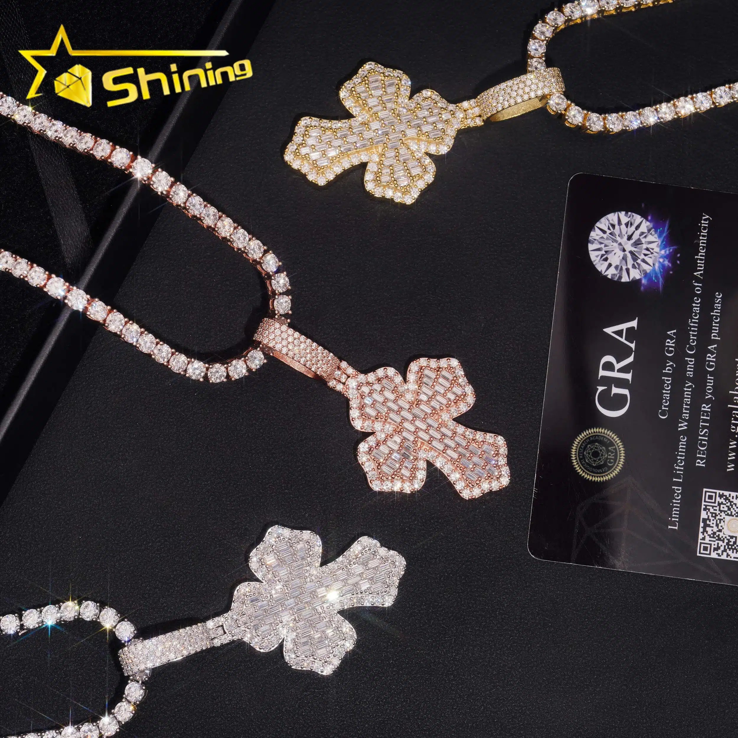 Factory Wholesale Price Hip Hop Jewelry 925 Sterling Silver D Color Men Necklace VVS Baguette Moissanite Iced Out Cross Pendant