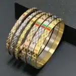 Be the first to review “Famous Brand Bracelet Female 18K Gold Stainless Steel Bangles Red and Green Charm Bracelets for Women Lover Jewelry Wholesale” Cancel reply