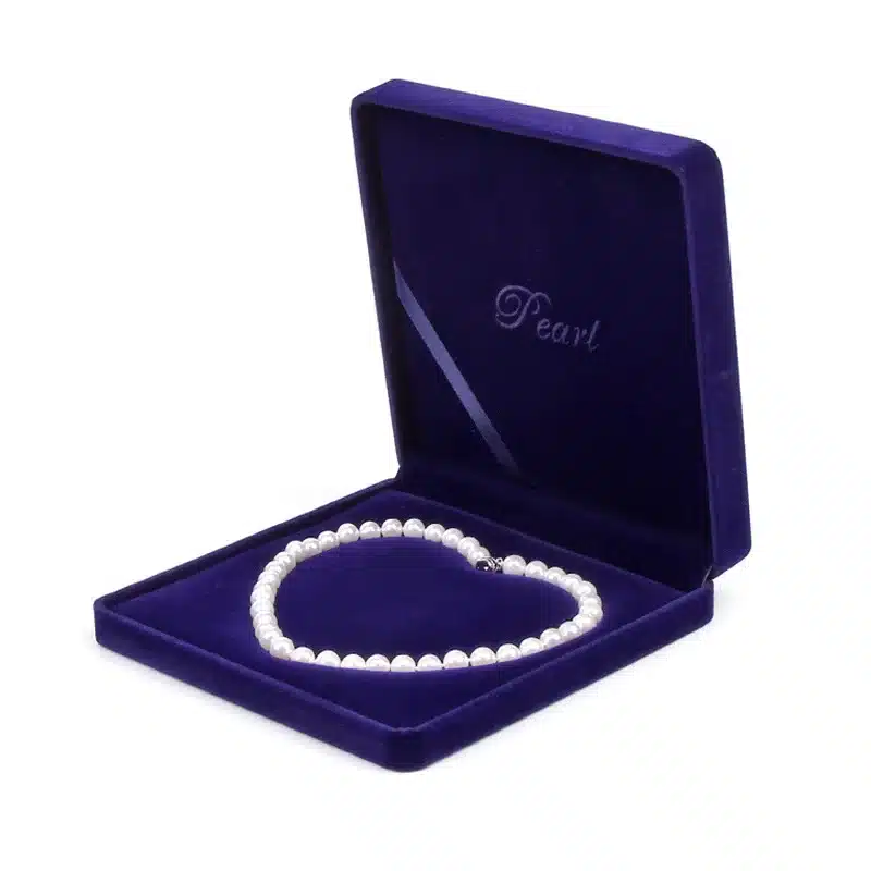 Be the first to review “Fancy Rectangle Velvet Necklace Box Soft Navy Red Pearl Jewelry Packaging Mother’s Day Gift with Square Pattern Bracelet Box”