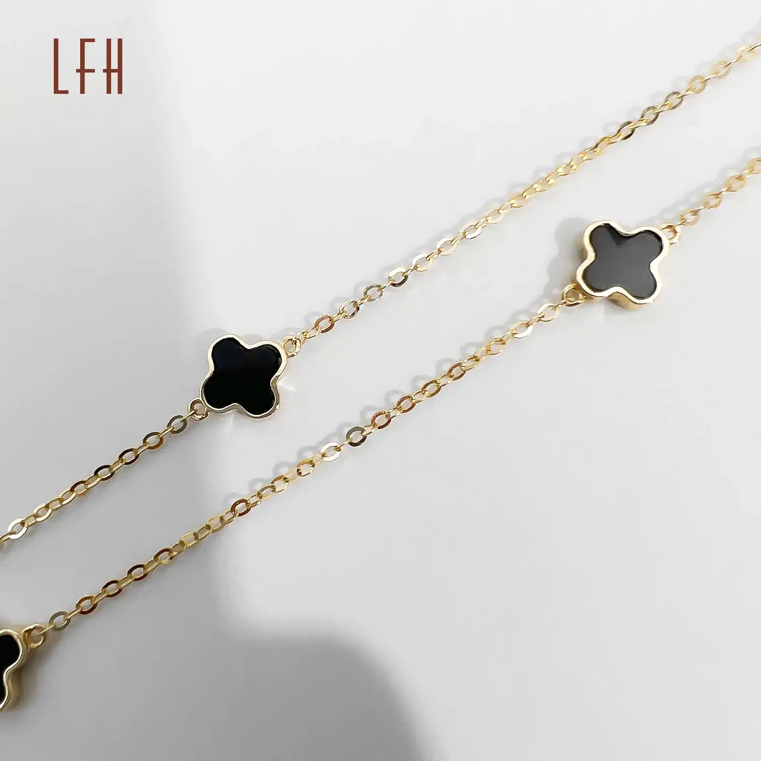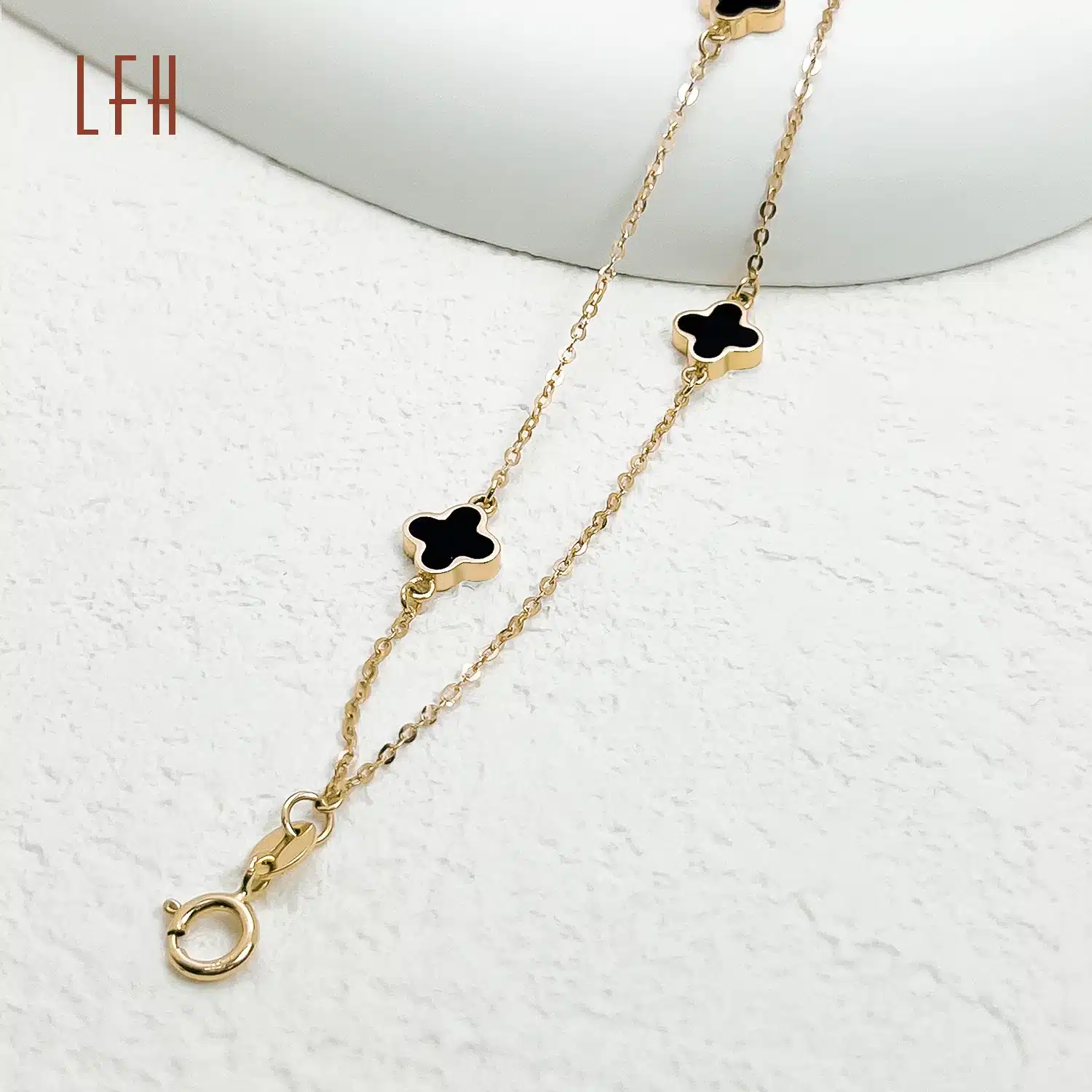 Fashion 18k Real Gold Jewelry Agate Bracelets Clover Bracelet 18k Pure Gold Lucky Four Leaf Clover Bracelet